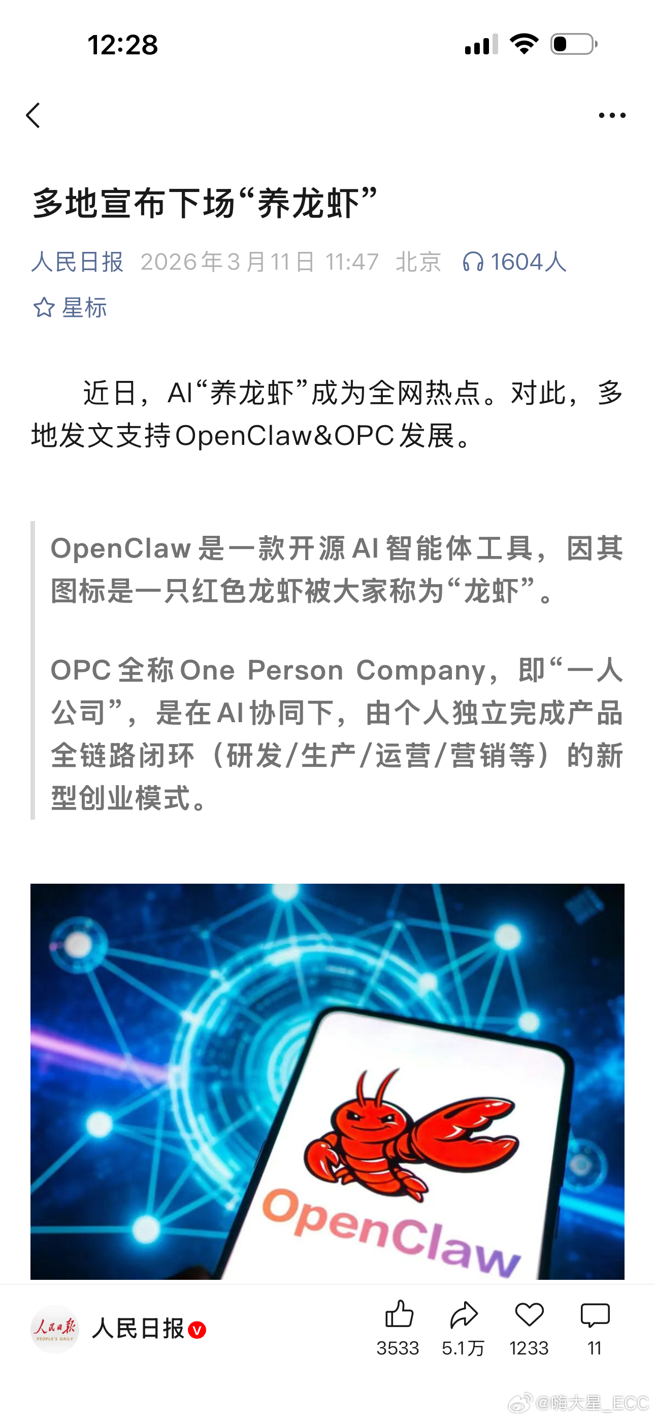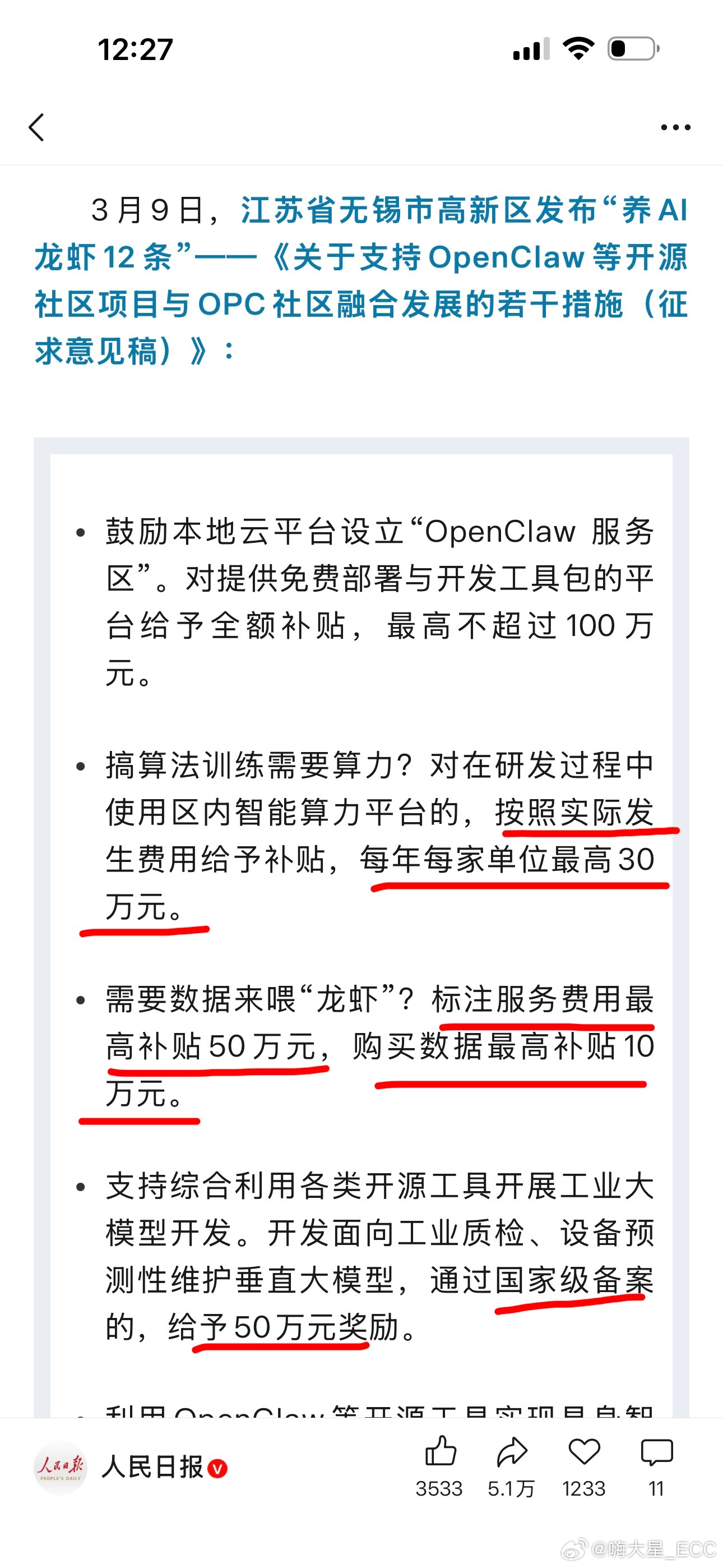 多地发文支持AI龙虾发展合肥扶持养龙虾最高补贴1000万 多地政府开始力挺 OpenClaw & OPC,“全民AI养龙虾”的时代可能真的要来了。