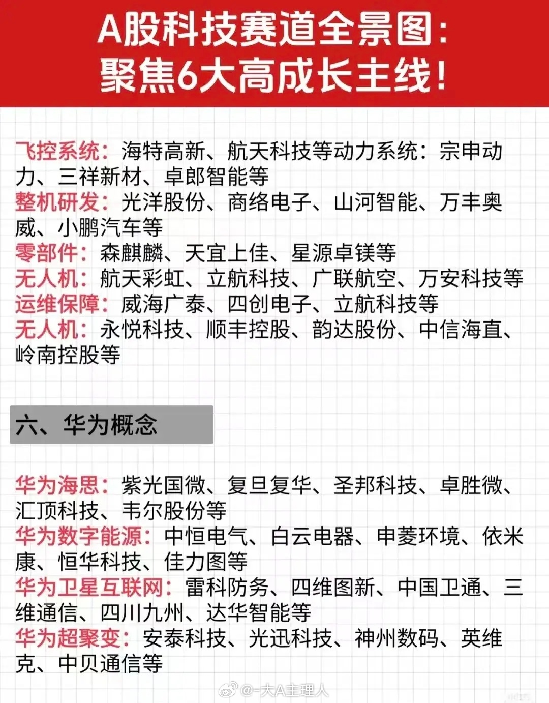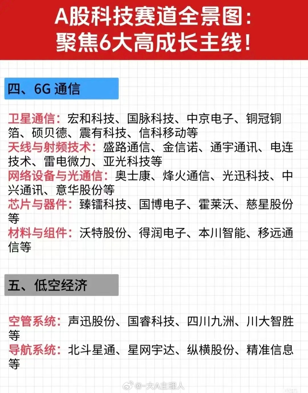 6大高成长科技主线梳理!(低空经济+华为概念+AI算力+人形机器人+6G通信+半导体芯片)这些行业为什么能够成为高成长科技主线?这6大概念兼具政策强支持+产业爆发拐点+业绩高确定性+国产替代+资金持续流入,且都处于从0到1、从1到N的关键阶段。未来市场规模不可估量!