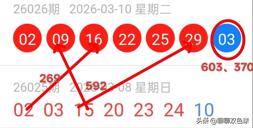 双色球26027期红球上下期尾数及蓝球尾数密码选号分析 26026期双色球红球开出了2、5、6、9四个尾数号码。大尾数号码开出了四枚奖号,小尾数号码开出了两枚奖号。同尾号开出了02、22,09、29,重号开出了02,无连号。 从当期红球开奖尾数看,大尾数号码反弹,同尾号热出,重号稍有回落,连号遗漏一期。26027期双色球红球大尾数号码继续关注,同尾号防断,连号关注二区落号,重号防轮空。 从双色球红球斜线图上看,除以5余1号回补了16,除以5余3号遗漏。26027期双色球红球关注除以5余3号回补。 26027期双色球红球尾数关注2、3、6、7、8尾。 26026期双色球红球上下期尾数及蓝球尾数密码选号猜中16。26027期双色球红球上下期尾数及蓝球尾数密码选号又是什么呢? 26025期双色球红球开奖结果: 02、03、15、20、23、24。 26026期双色球红球开奖结果: 02、09、16、22、25、29。 26025期红球02,26026期红球16,密码选号269。26027期红球9尾关注19。 26025期红球15,26026期红球09、29,密码选号592。26027期红球2尾关注12、22。 26026期双色球蓝球03,密码选号370、603。26027期双色球红球3尾关注13,7尾关注27或无,6尾关注06,0尾无。 26027期双色球红球上下期尾数及蓝球尾数密码选号关注的号码有06、12、13、19、22。重点关注06、13中落号一枚。 以上内容均为个人观点,仅供参考。