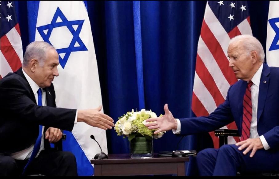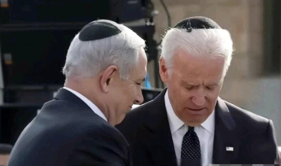 拜登和内塔尼亚胡试图握住对方的手,可是两人谁也不主动,尽管拜登的岁数比内塔尼亚胡的大; 拜登似乎在苦口婆心劝说着内塔尼亚胡,搞的内塔尼亚胡一脸的不高兴。 拜登和内塔尼亚胡两人雪白的头发上都戴着一顶巨小的黑帽子,不知是啥用意? 拜登一副委屈巴巴的样子,莫非因为头上的小黑帽儿?