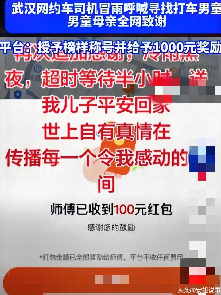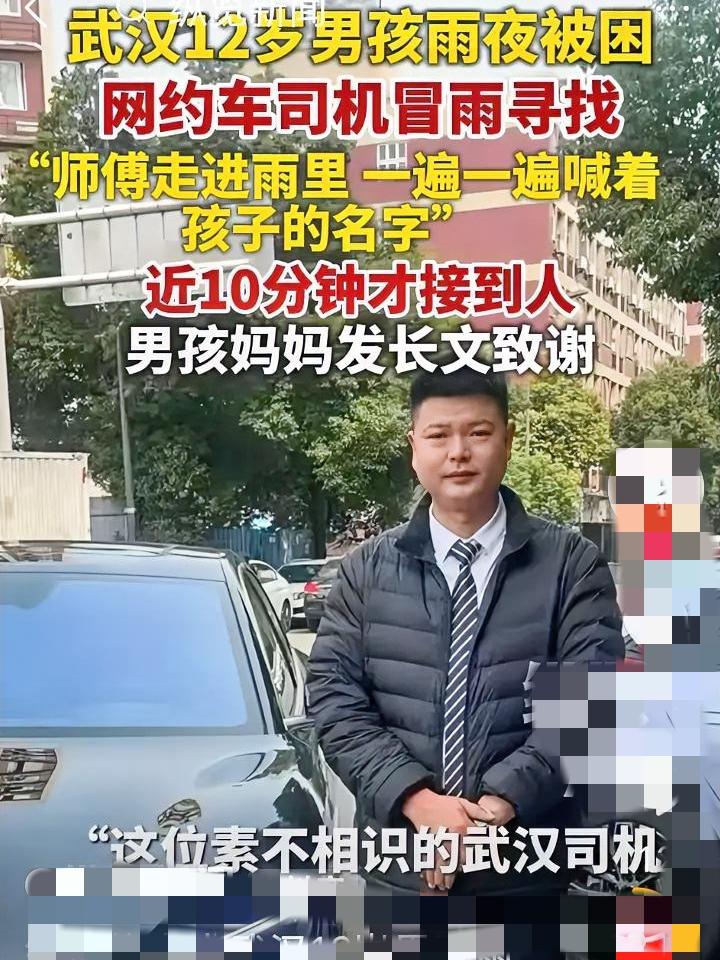 全网点👍🏻!武汉网约车师傅弃单寻娃,半身湿透…… 江城的夜雨裹挟着狂风,斜斜地砸在车窗上,网约车雨刮器飞速摆动,却依旧难挡雨幕。李师傅将车停在定位路口,反复拨打乘客电话,听筒里只有持续的忙音——孩子母亲焦急的声音传来,11岁的儿子独自在附近天桥等候,电话手表关机,早已不见人影。 李师傅抓起副驾的雨伞,顾不上撑稳就冲进雨里。冰冷的雨水瞬间打湿外套,他顺着天桥阶梯来回奔走,扯着嗓子在风雨中呼喊:“穿灰色校服的小朋友,你在哪?” 积水没过脚踝,冷风刺骨,他在天桥下的拐角处,发现了缩在柱子旁的小男孩。孩子浑身湿透,紧紧抱着书包,眼神里满是慌张。李师傅立刻将伞完全倾向孩子,快步将他带回车内,打开暖气驱散寒意。 车内仪表盘的数字跳动,比原定行程延误了整整20分钟。孩子冻得嘴唇发紫,小声呢喃着害怕,李师傅默默递上干纸巾,轻声安抚。抵达小区时,孩子母亲早已冒雨等候,紧紧握住李师傅的手连声道谢,执意要多付车费,却被他笑着摆手拒绝。 那把被狂风刮得变形的雨伞,被李师傅晾干后收在了后备箱。他总说,比起赚钱,找到孩子的那一刻,所有的奔波都有了意义。 你是否也曾被陌生人的善意温暖过?那些风雨里不计得失的伸手相助,是否藏着最动人的人间温情? 网约车师傅的暖心瞬间 雨夜陌生人的守护