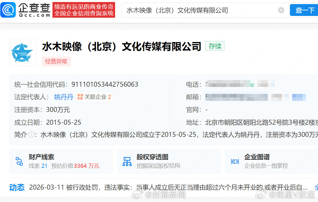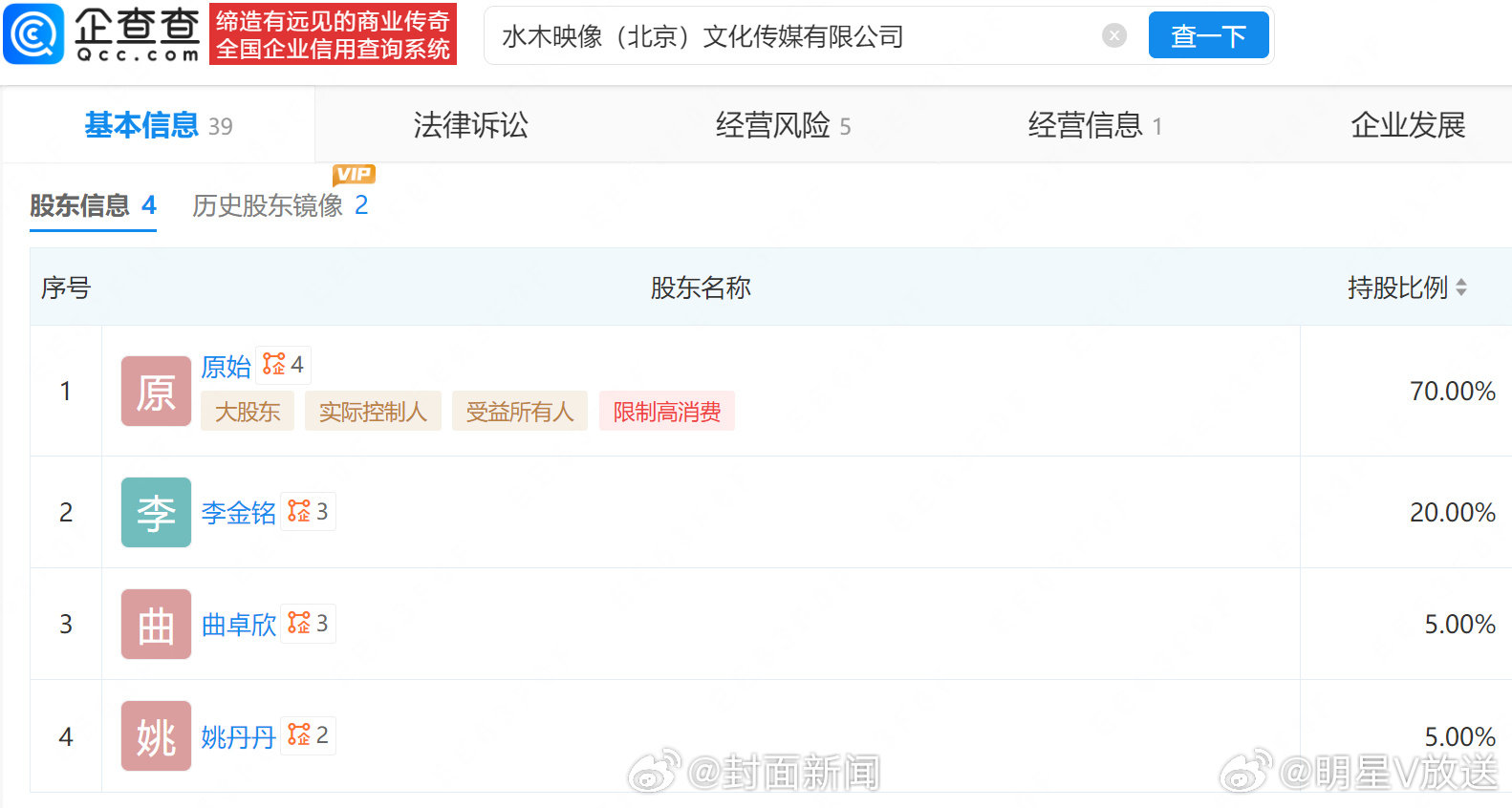 李金铭关联公司被吊销执照 李金铭关联公司多项违规被罚 据企查查APP显示,水木映像(北京)文化传媒有限公司因多项经营违规被吊销执照,该公司存在未按登记地址经营、未年报、税务异常等问题,同时长期未开展经营活动。公司 2015 年注册,李金铭为股东之一,目前已被市场监管部门处罚。