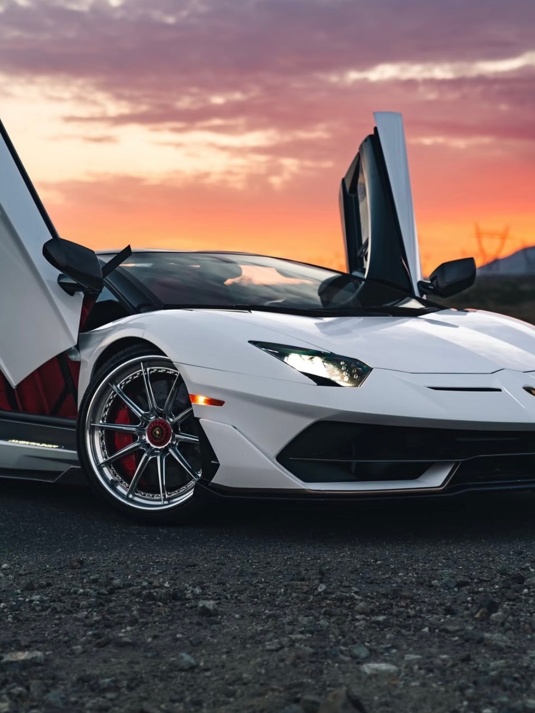 白色兰博基尼 Aventador SVJ,这标志性的剪刀门一打开,再配上这攻击性拉满的空气动力学套件,车身线条硬朗又流畅,真的是太帅了!