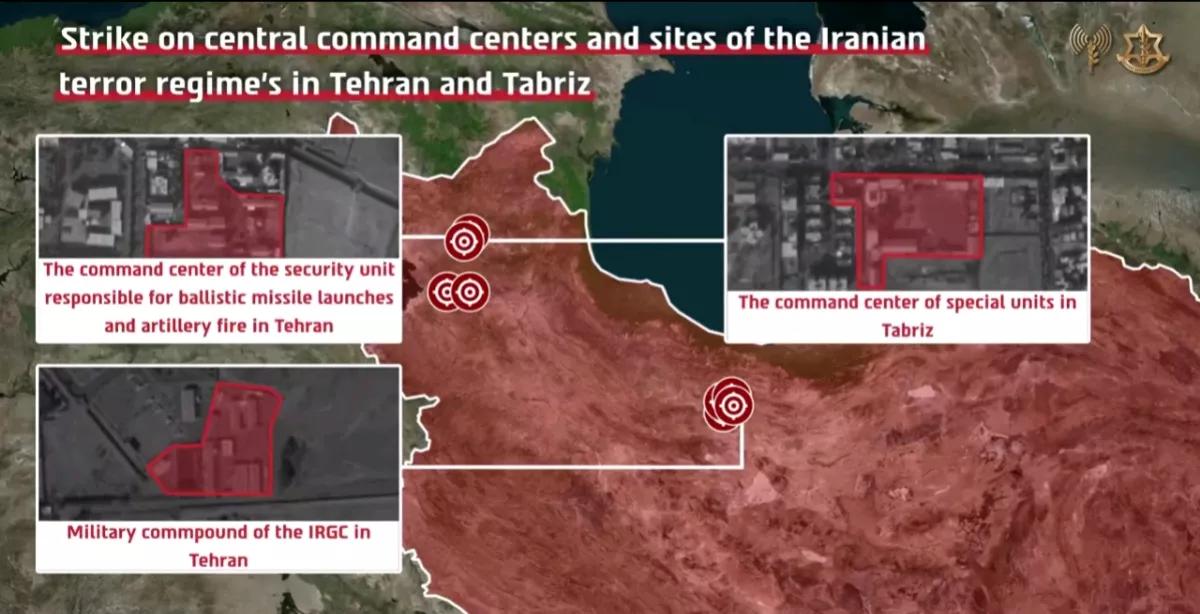 天空新闻报道,当地时间10日,以色列国防部新闻处发布视频,宣称以军方当天针对伊朗首都德黑兰、革命卫队军事重镇塔布里兹,发动大规模定点打击行动,并成功摧毁多处重要军事设施,和至少7个弹道导弹发射装置。 视频配文罗列的打击目标包括,德黑兰革命卫队特种部队指挥中心、“伊玛目哈桑”情报局总部、塔布里兹“巴斯基”民兵总部,以及部署在德黑兰西南的弹道导弹地下发射基地。