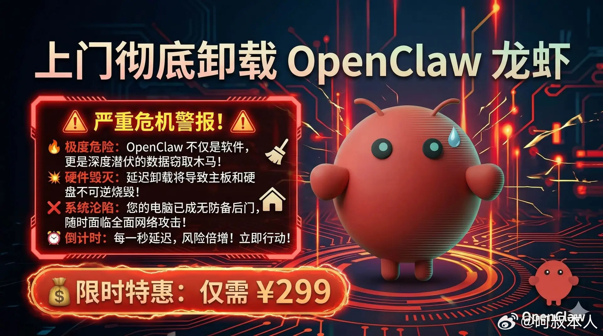OpenClaw大反转这才几天?!花钱装了然后花钱卸,典型的智商收割机……互联网应急中心说 OpenClaw(龙虾)默认配置存在高危漏洞,然后工信部央视都发风险预警,一下就人人喊打了?!其实该用龙虾创造价值的用的风生水起,跟风的几百块求人家装,几百块球人家卸,很多人是装了才知道 Token 要花钱,我就想问你连龙虾“心跳机制”都嫌贵的人装这个干啥呢?