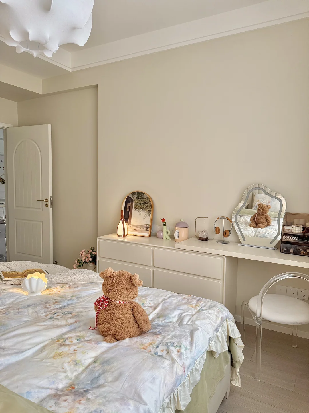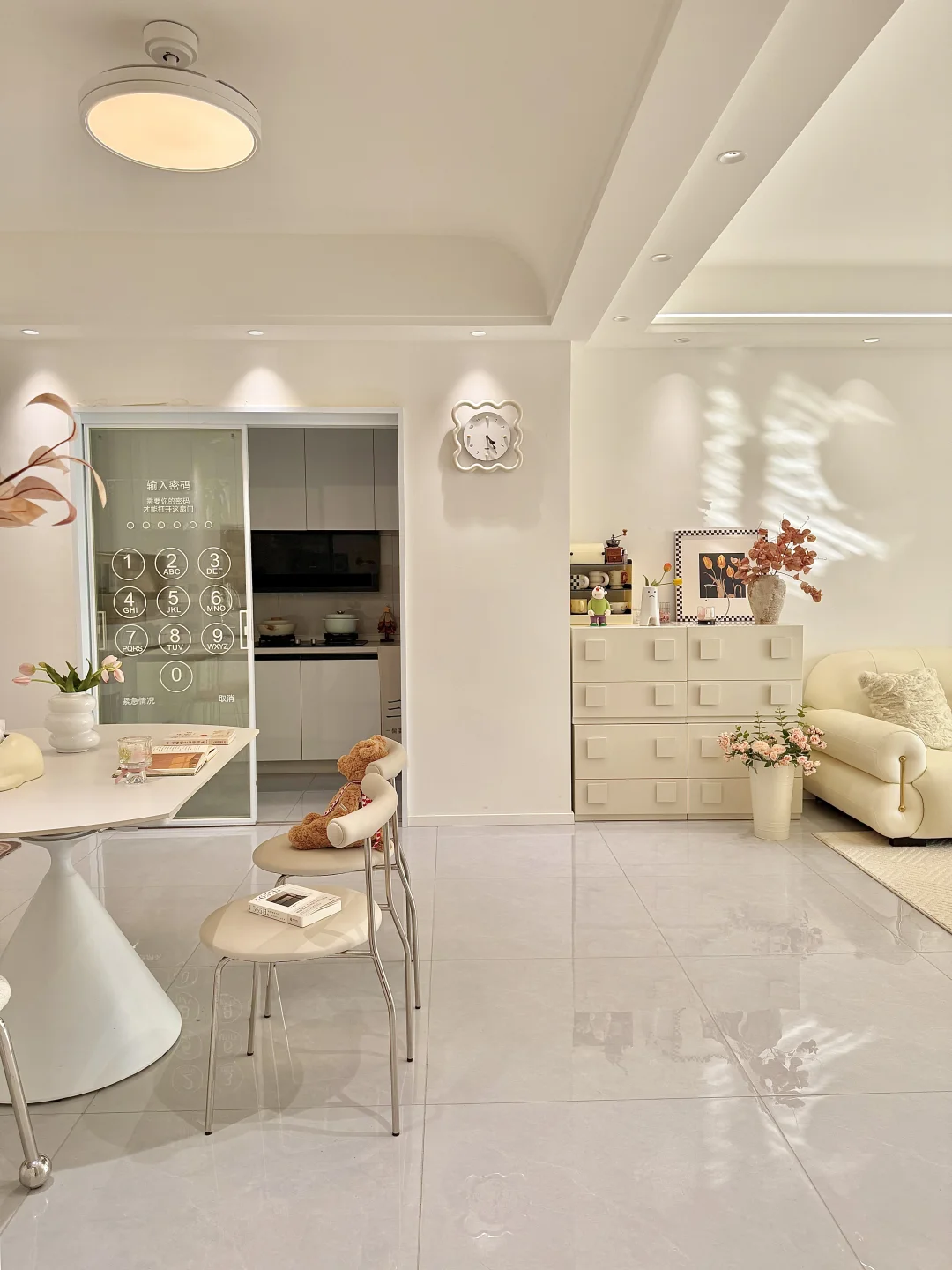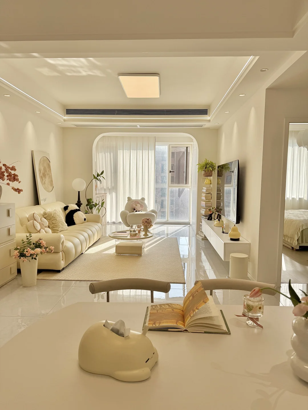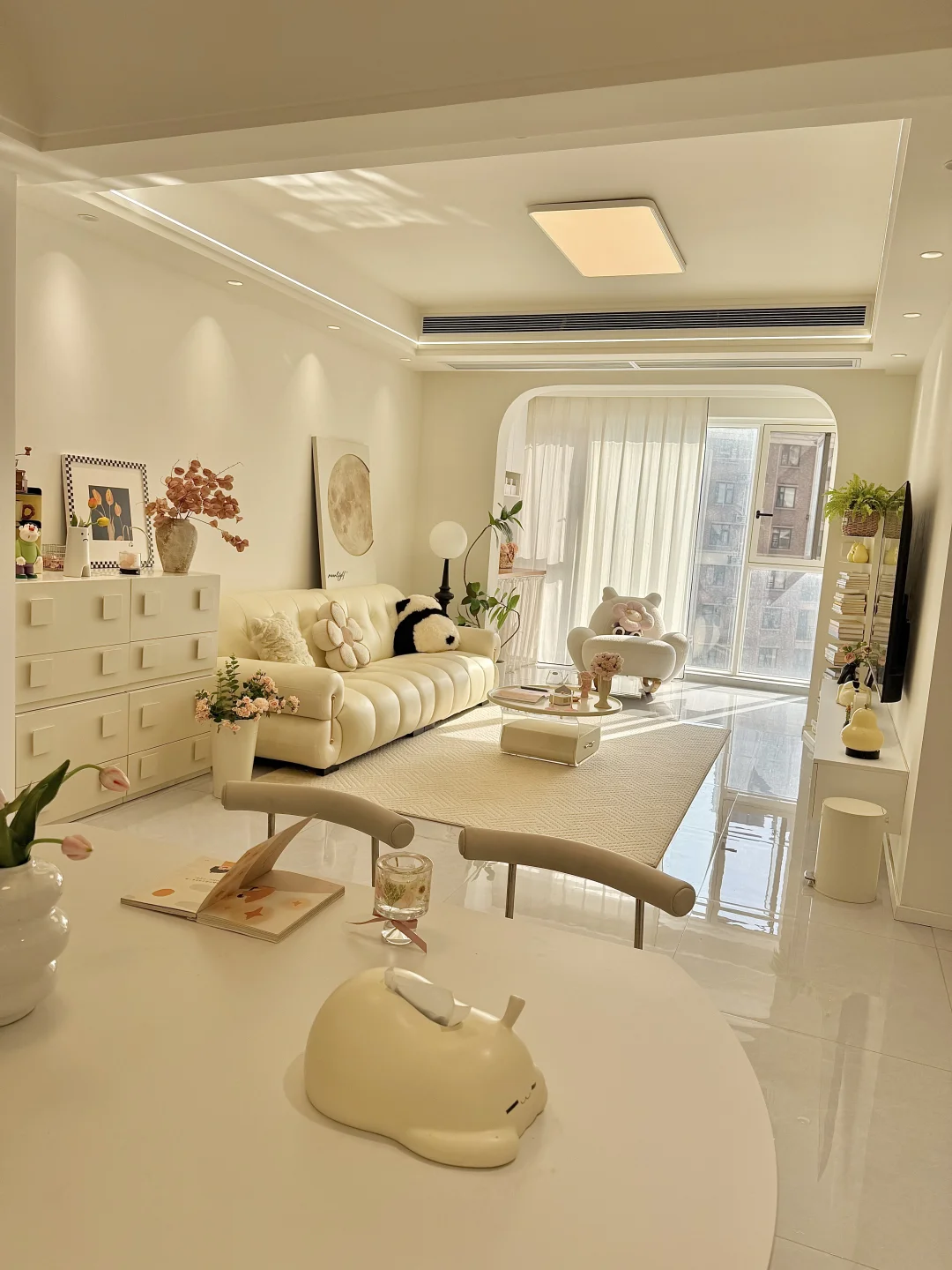 🏡我家建面95平两室一厅 预算不足,没请设计师全程自装 硬装花了7w,软装4w 我妈说这💰花的真值! 封阳台,客餐厅一体空间显得通透 瓷砖通铺,墙顶通刷奶油色乳胶漆 双眼皮吊顶➕弧形拱门,简单造型 奶油风软装选择了同色系更搭 沙发茶几地毯统一奶fufu色调~ 面积不大,但是自己用心装修出来的家 真的是越住越舒服~