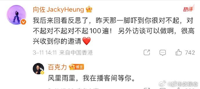 向佐向百克力道歉近日,娱乐圈一则不大不小的消息引起了大家的注意 —— 向佐向百克力道歉。这看似简单的一个举动,背后却藏着许多值得我们探讨的东西。向佐,作为娱乐圈颇具话题度的人物,他的一举一动总会受到大众的关注。百克力,也是活跃在荧幕上的知名主持人。两人之间究竟发生了什么事情,让向佐公开向百克力道歉呢?虽然具体事由我们可能还不清楚细节,但这道歉事件本身却给我们上了一堂社交课。在生活中,道歉并不是一件容易的事情。很多人碍于面子,或者觉得道歉会显得自己软弱,所以常常不愿意轻易低头。然而,心理学研究表明,适时道歉能够有效修复人际关系。一项对上千人的调查显示,超过 70% 的人认为,真诚的道歉会让他们对犯错者的印象有所改观,甚至关系会变得比以前更亲近。向佐能够放下身段向百克力道歉,这其实是一种很勇敢的行为。在娱乐圈这个复杂的社交圈里,人际关系的维护至关重要。一个小小的矛盾,如果处理不当,可能就会引发一系列的连锁反应。向佐的这次道歉,说不定就避免了后续可能出现的更多麻烦。就像娱乐圈里曾经有过的一些明星之间的矛盾,因为双方都不愿意先低头道歉,最后闹得不可开交,双方形象都受到了影响。而向佐的做法,无疑是明智之举。从另一个角度看,向佐的道歉也体现了他对公众形象的重视。明星的形象就像是他们的 “招牌”,在公众面前保持良好的形象,才能获得更多粉丝的喜爱和支持。通过这次道歉,他向粉丝和公众展示了自己敢于承担责任的一面,说不定还能收获更多人的好感呢。总结一下,向佐向百克力道歉这一事件,不仅仅是娱乐圈的一个小插曲。它告诉我们,在社交生活中,道歉是一种智慧,是一种勇气。不要害怕道歉会让自己没面子,真诚地说一句 “对不起”,可能会让你的人际关系变得更加和谐。无论是明星还是普通人,都应该学会在适当的时候低头,这样才能在人生的道路上走得更加顺畅。大家对于向佐的这次道歉有什么看法呢?欢迎在评论区留言讨论。