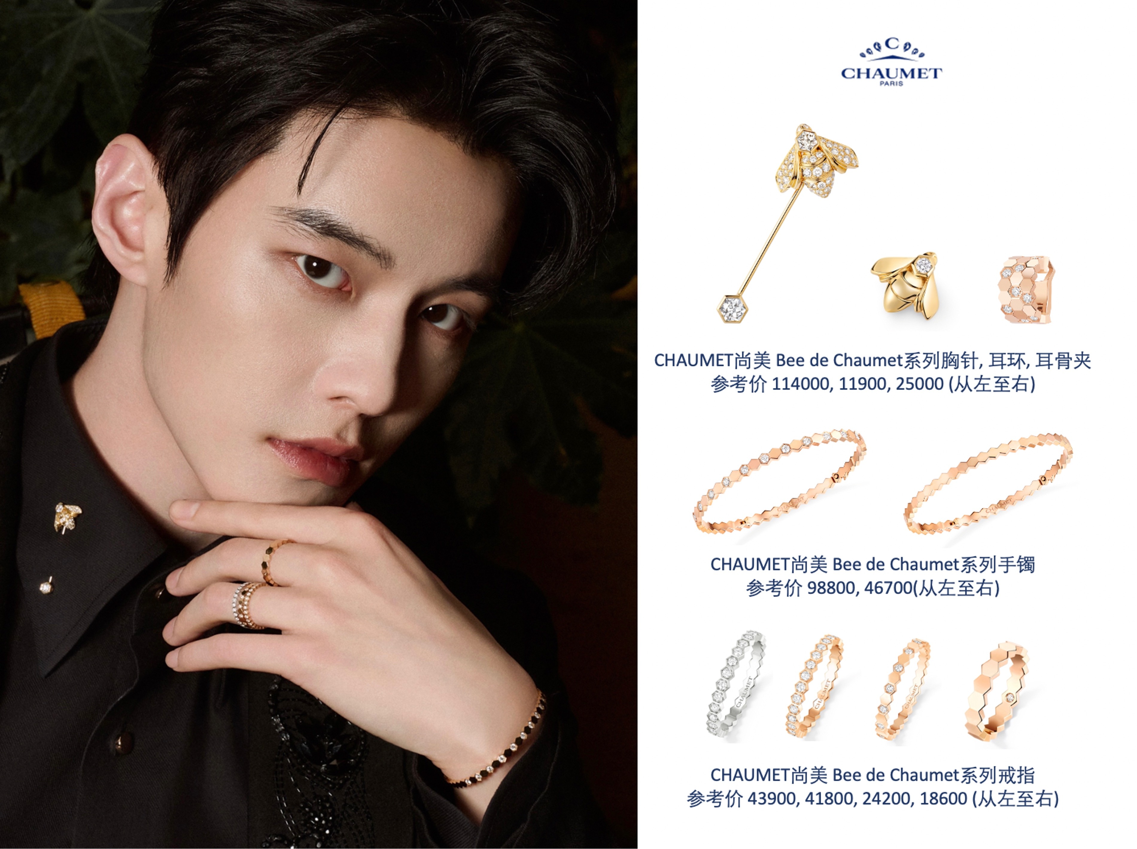 何与 佩戴CHAUMET Bee de Chaumet系列珠宝,于巴黎随拍中演绎率性风范。蜜蜂与蜂巢图案勾勒独特造型,闪耀摩登光芒。