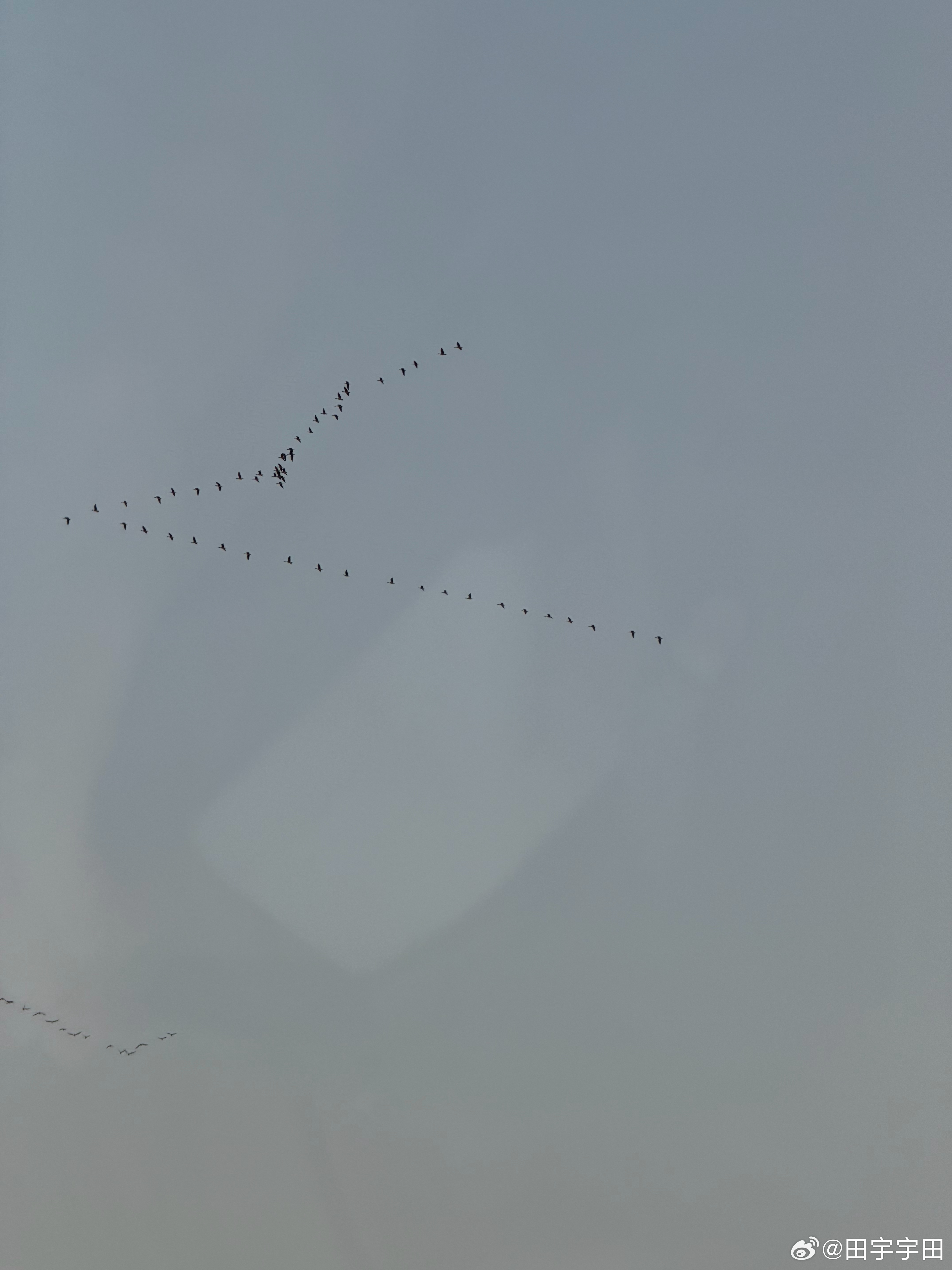 大雁一会儿排成一字形一会儿排成人字形一会儿排成S,一会儿…… 天津