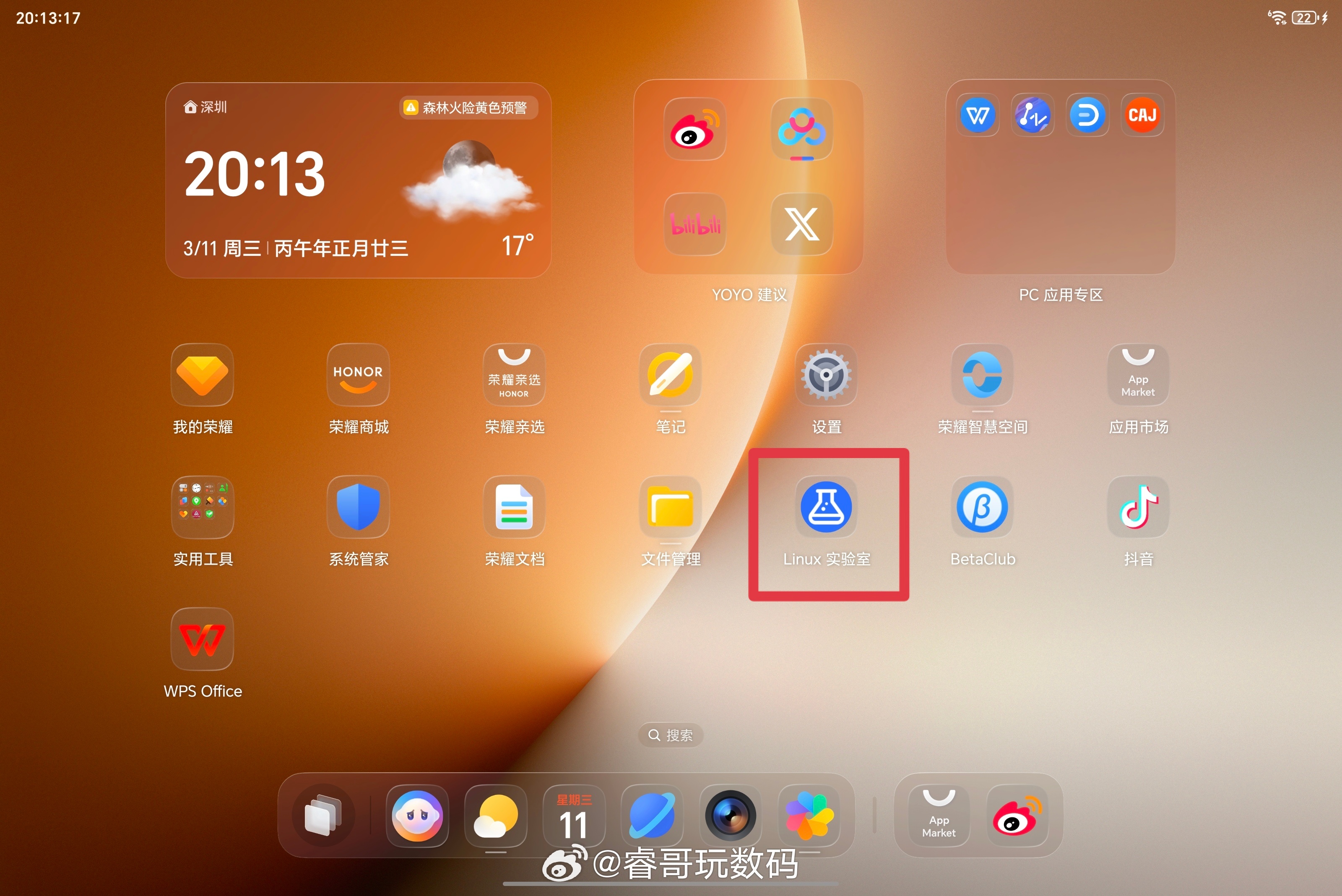 荣耀MagicPad3Pro 升级MagicOS10 137版本后,即可通过开发人员选项-Linux实验室一键安全“养虾”。该应用基于OpenClaw开源项目构建,由荣耀提供封装及运行环境,提供千问和智谱两种API Key配置,界面非常友好,小白也能轻松上手 除养虾外也可以当做普通Linux虚拟机使用,安装丰富软件或用于信创、科研教学等用途。荣耀MagicOSMagicOS月月新