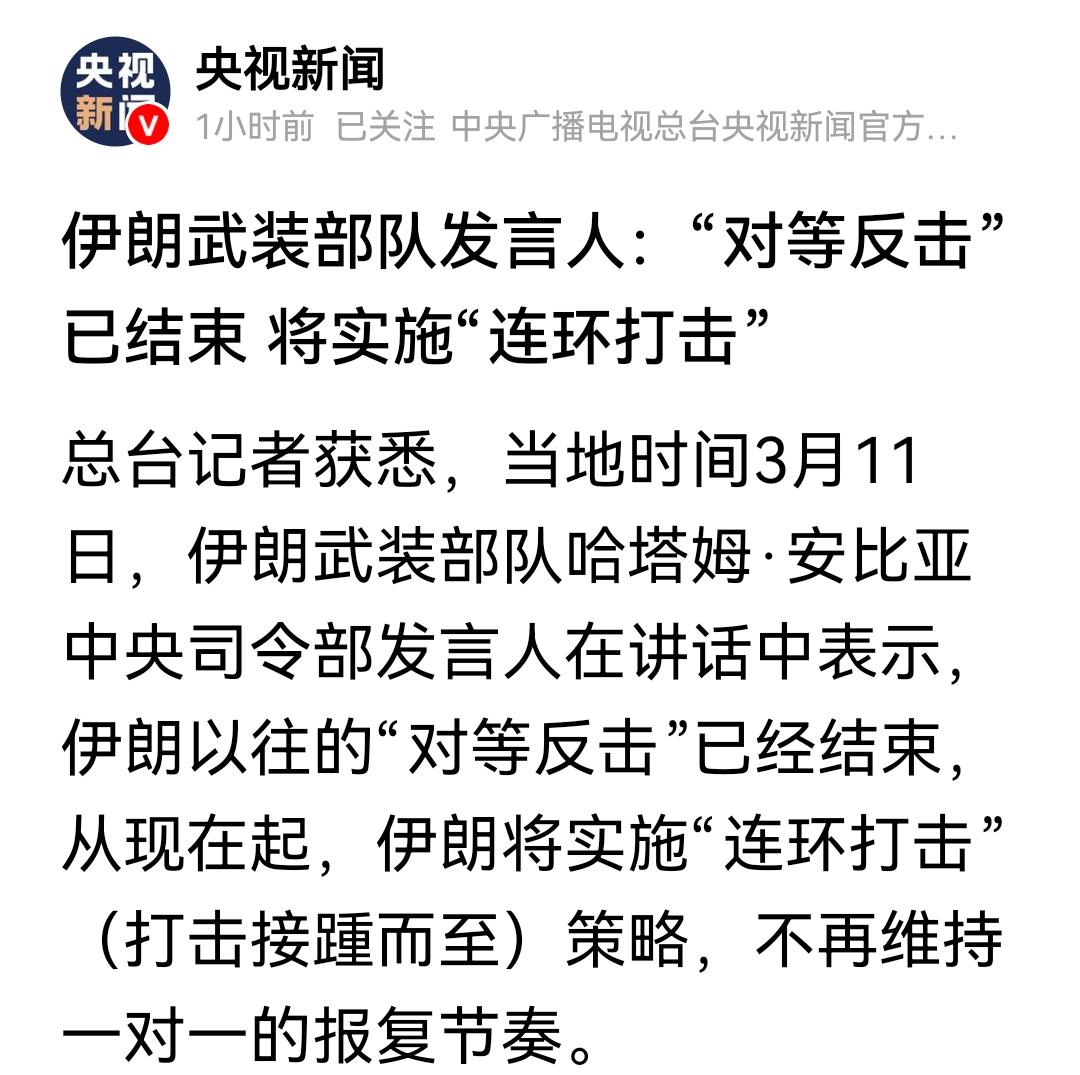 看来新的领袖确实受伤了。 伊朗宣布改变还击政策, 不再保持一对一的报复节奏。 一对一的还击表明伊朗不想把事态扩大,或许还心存一丝幻想。 然而,新的领袖仍遭定点清除, 虽未被炸死,但网传其被炸受伤。 这或许是解除回合制还击的关键因素。