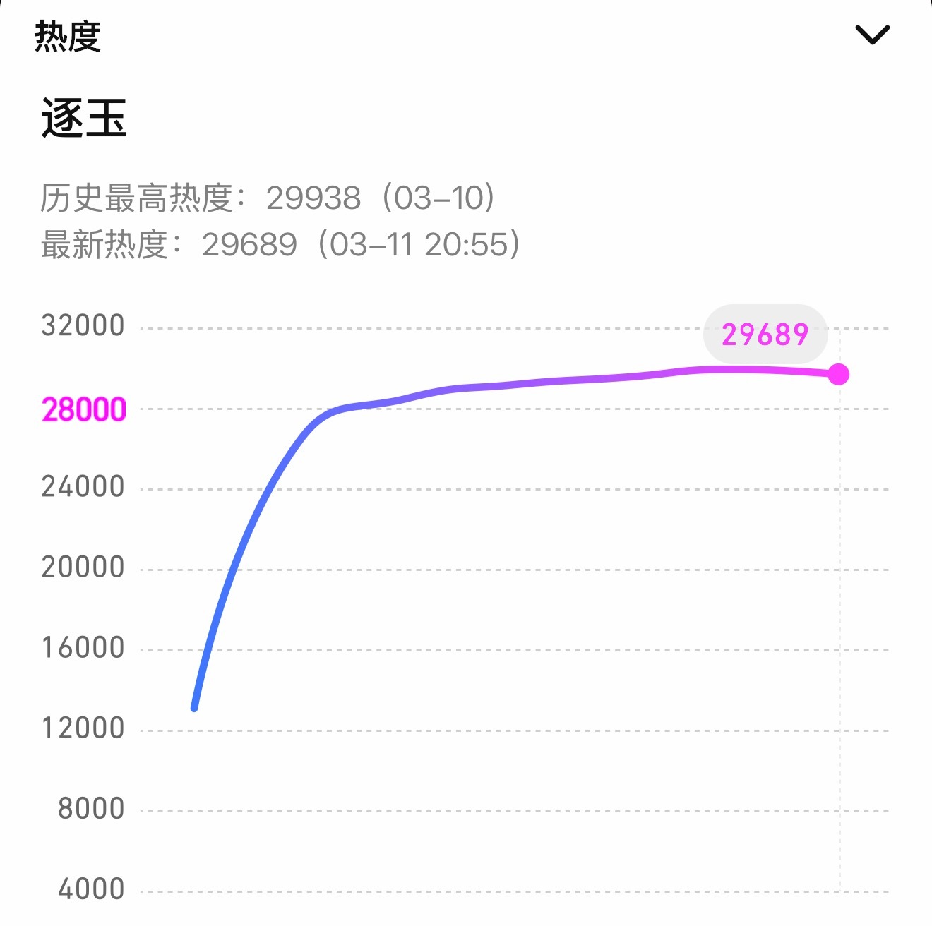 爱奇艺先破万了,内鱼第一部双平台联播破万剧近在咫尺了,你们猜鹅今天卡还是不卡,热度现在29689,好尴尬哈哈哈哈…逐玉爱奇艺破万