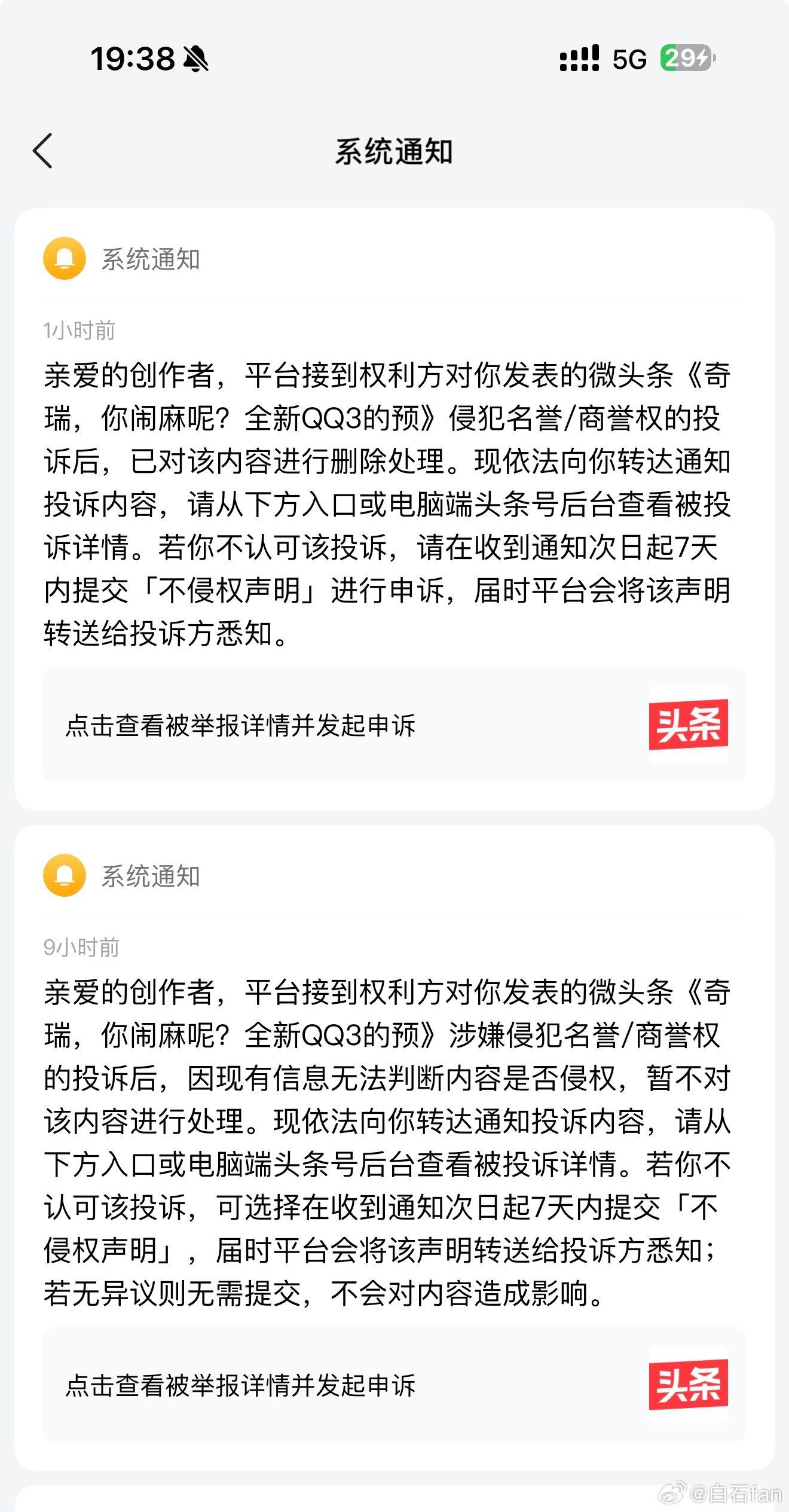 吐槽了一下全新QQ3预售价有点贵然后被奇瑞投诉了……当然是今日头条~(¯▽¯~)~