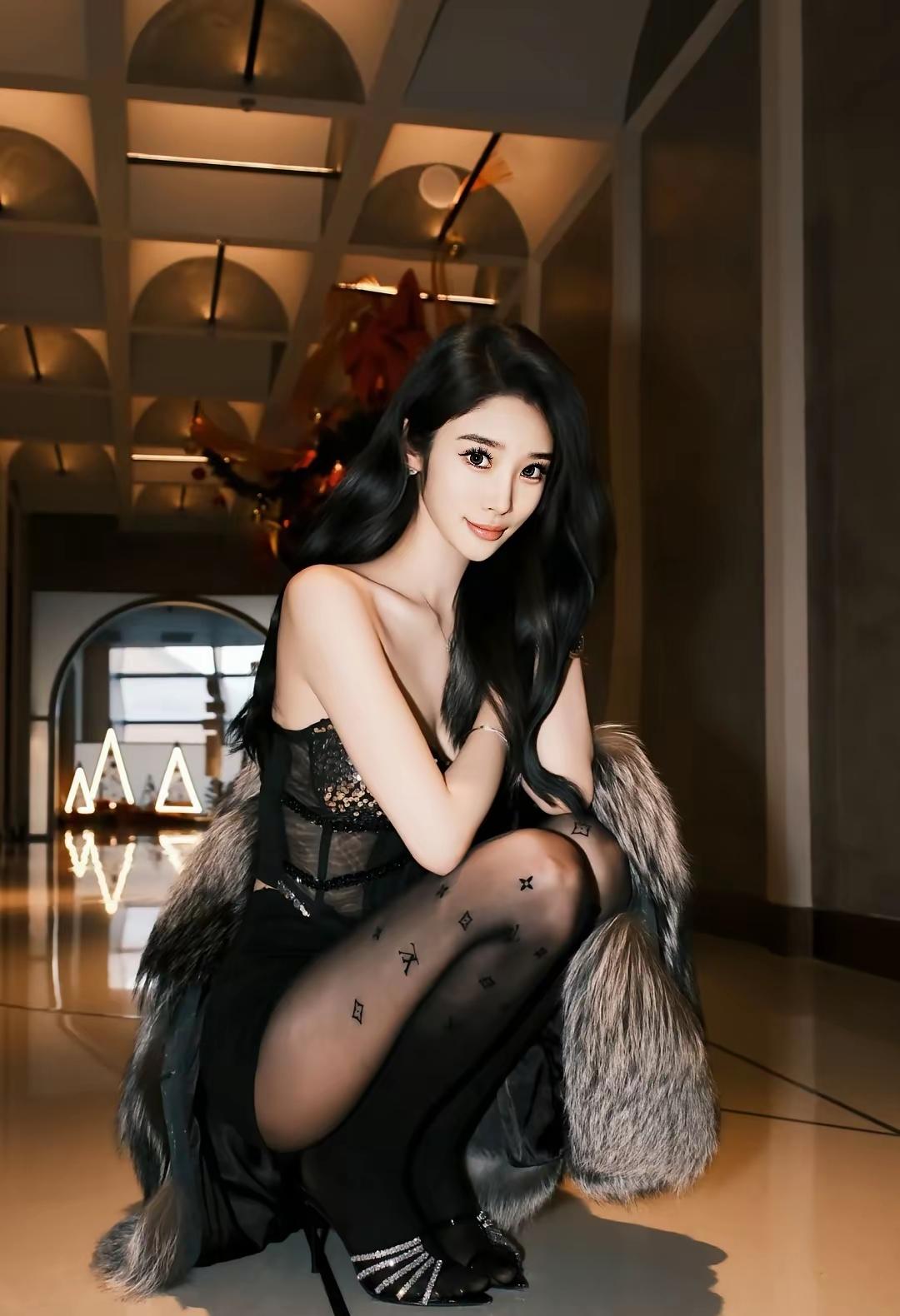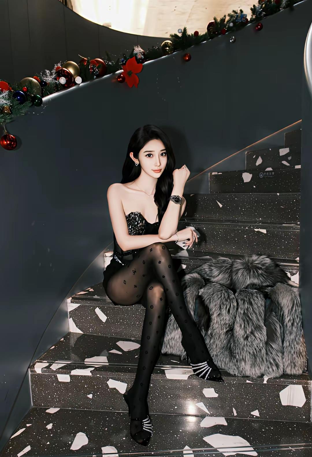 圣诞氛围下的优雅黑丝女郎,尽显时尚魅力!