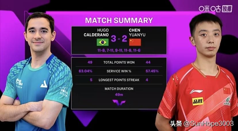 3.11日,秦指肖指王皓都在看陈垣宇和雨果的比赛,王皓一副很紧张的样子。 陈垣宇2-3输给雨果,看完比赛,就三个字“太可惜”。 重庆冠军赛,陈垣宇首轮和雨果交手, 新加坡大满贯的时候,陈垣宇3-1战胜了雨果,这一次雨果是有备而来, 但是陈垣宇还是有优势的,大比分2-1领先, 第四局也一度8:4领先, 但是被雨果反超, 进入决胜局,陈垣宇追到6平,但是6平之后就把握不住了。 王皓一副很命苦的样子,这几个孩子,也都在折磨他。 陈垣宇和莫雷加德,勒布伦都打到过决胜局6平,然后就不会打了, 关键比分还是得练,多打多练, 相信就会好的。 赛后,陈垣宇的表情,也是很不甘心, 好好总结,继续加油,下一次赢回来!
