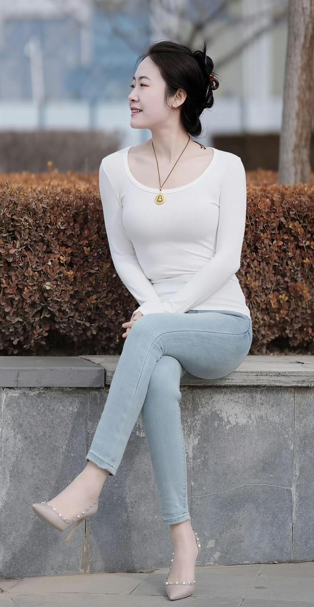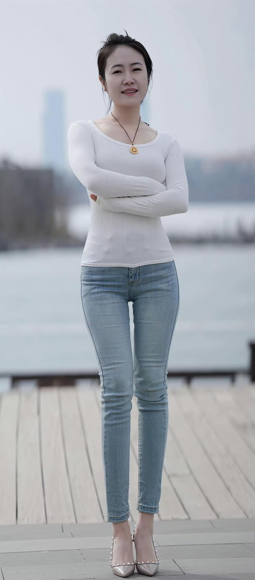 白针织衫配牛仔裤也能穿出这么优雅的感觉~简约的穿搭衬得气质温婉又大方,侧身抬手的瞬间还透着灵动的美!