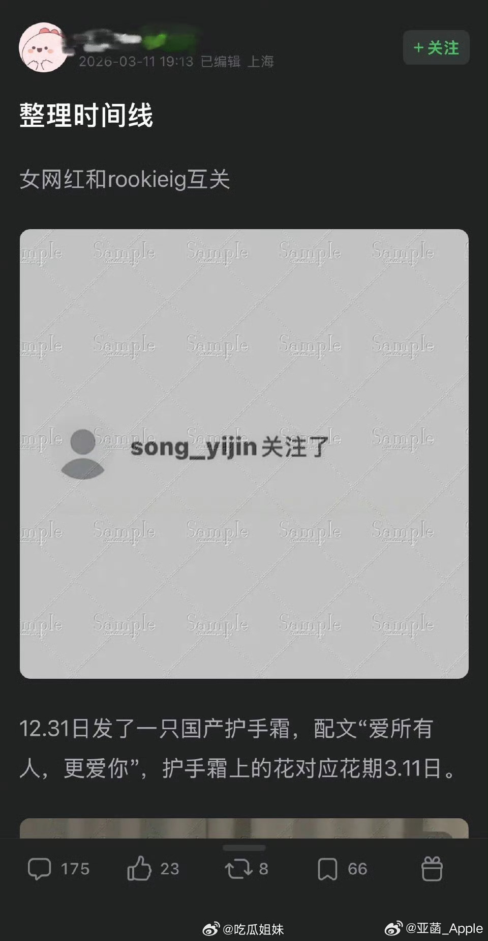 疑似Rookie新女友豆瓣网友疑似扒出了Rookie的新女友。