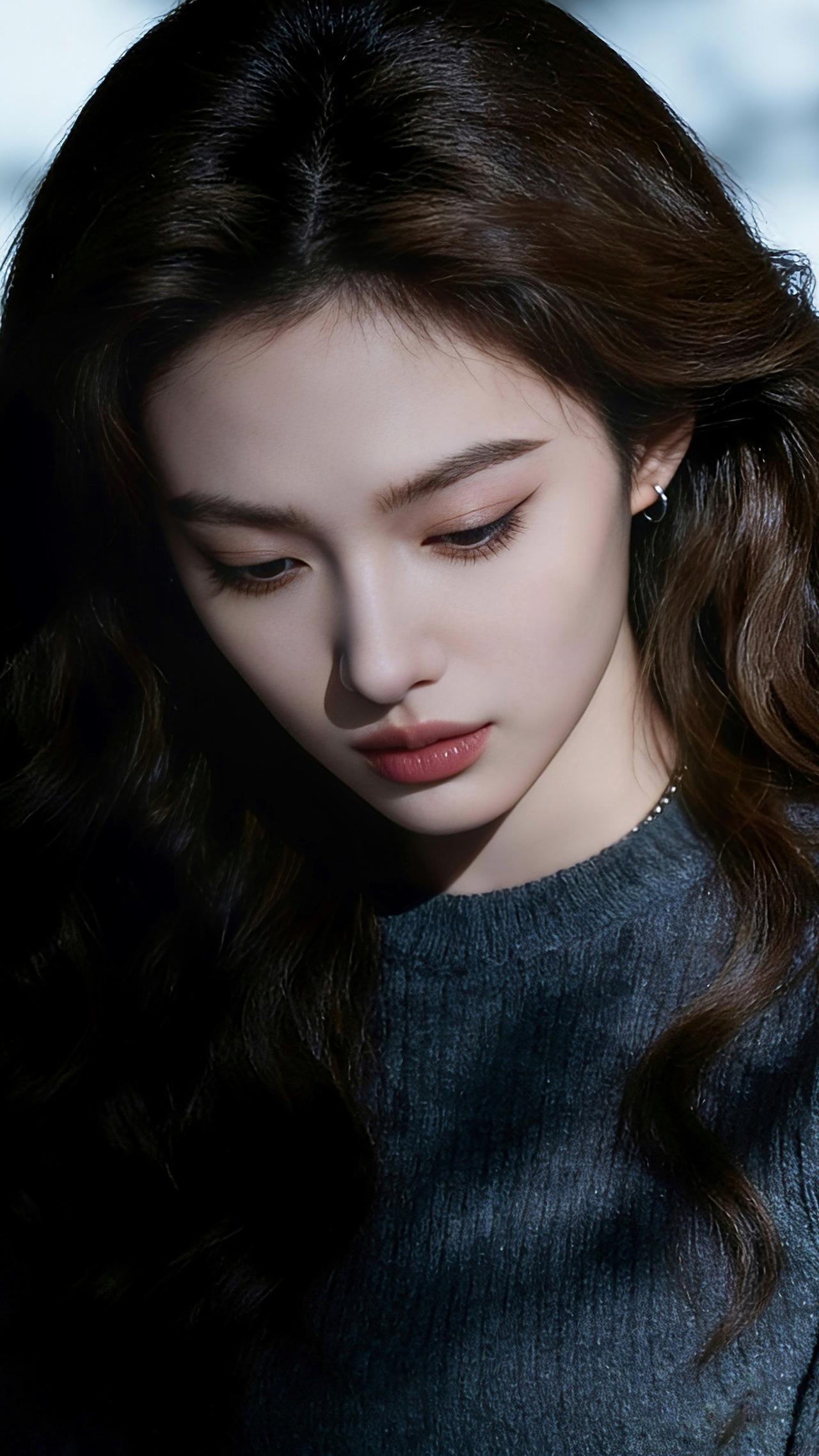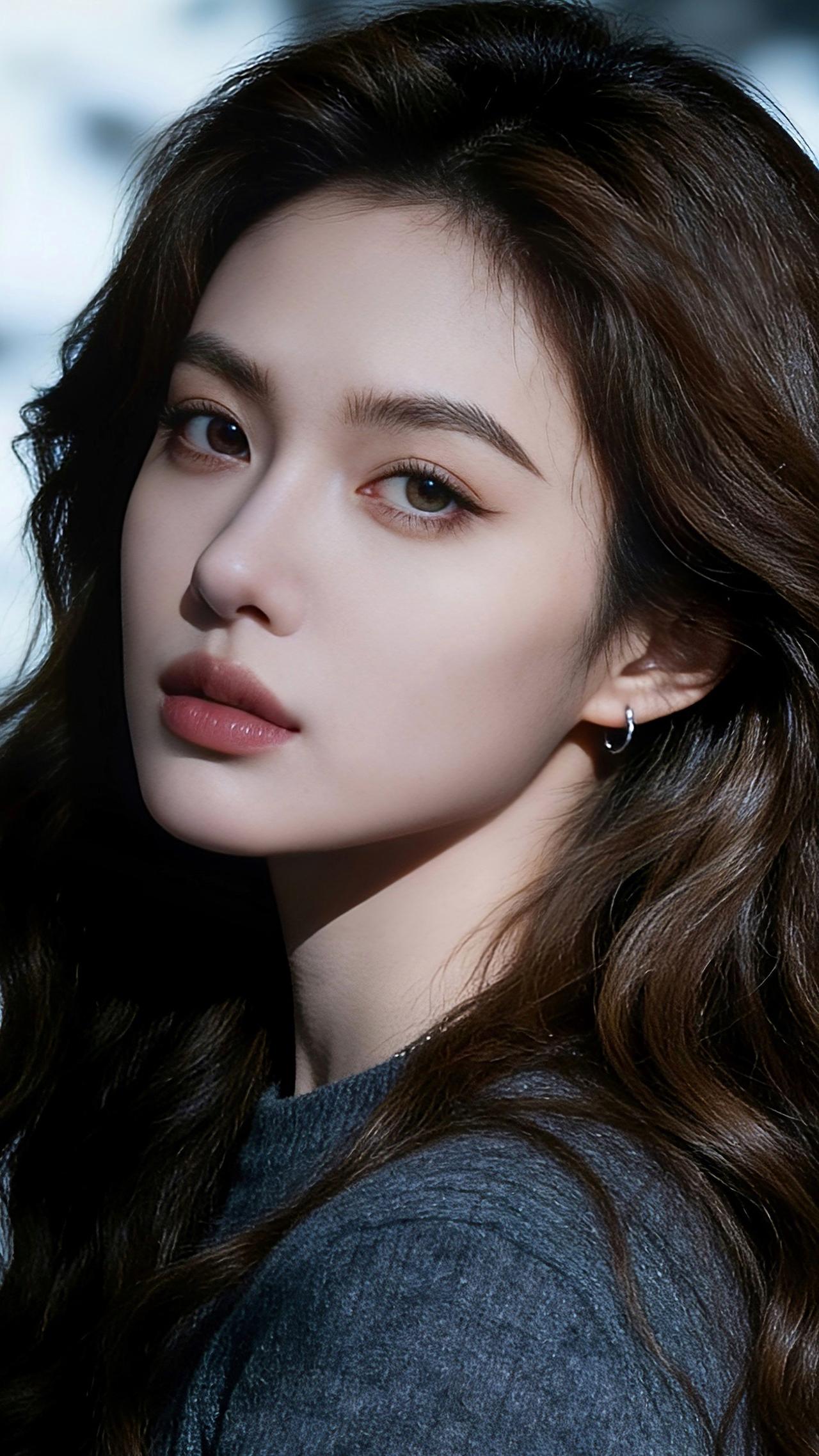 乌发卷曲垂落,深灰毛衣衬雪肌。银环耳钉添雅,侧颜如画:眉含情,眼波静,粉唇微抿。虚化浅调融雪意,光影织就静谧画卷,温婉气韵直抵心尖,一眼沦陷! 图片为A l辅助完成,请注意甄别!
