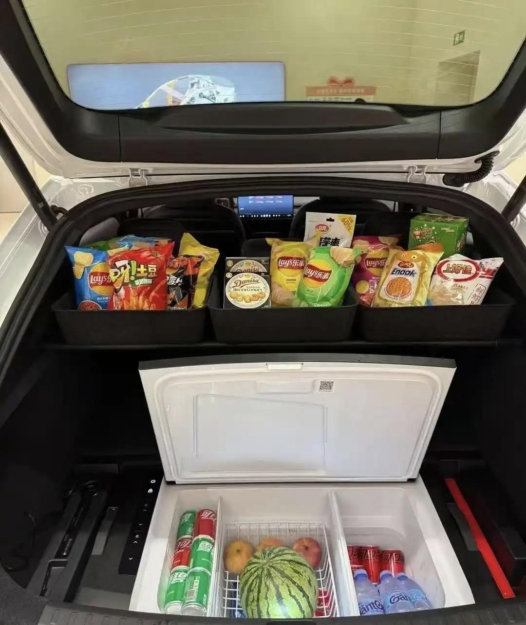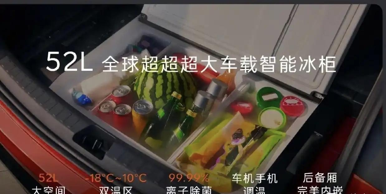 乐道L60 推出52升独立压缩机车载冰柜,这别说冻几个饮品了,冻上一家人一周的食材都绰绰有余,但这样做所带来的后果,是会占用后备箱下沉空间,不过如果你晚上想开去夜市卖点什么就很方便了