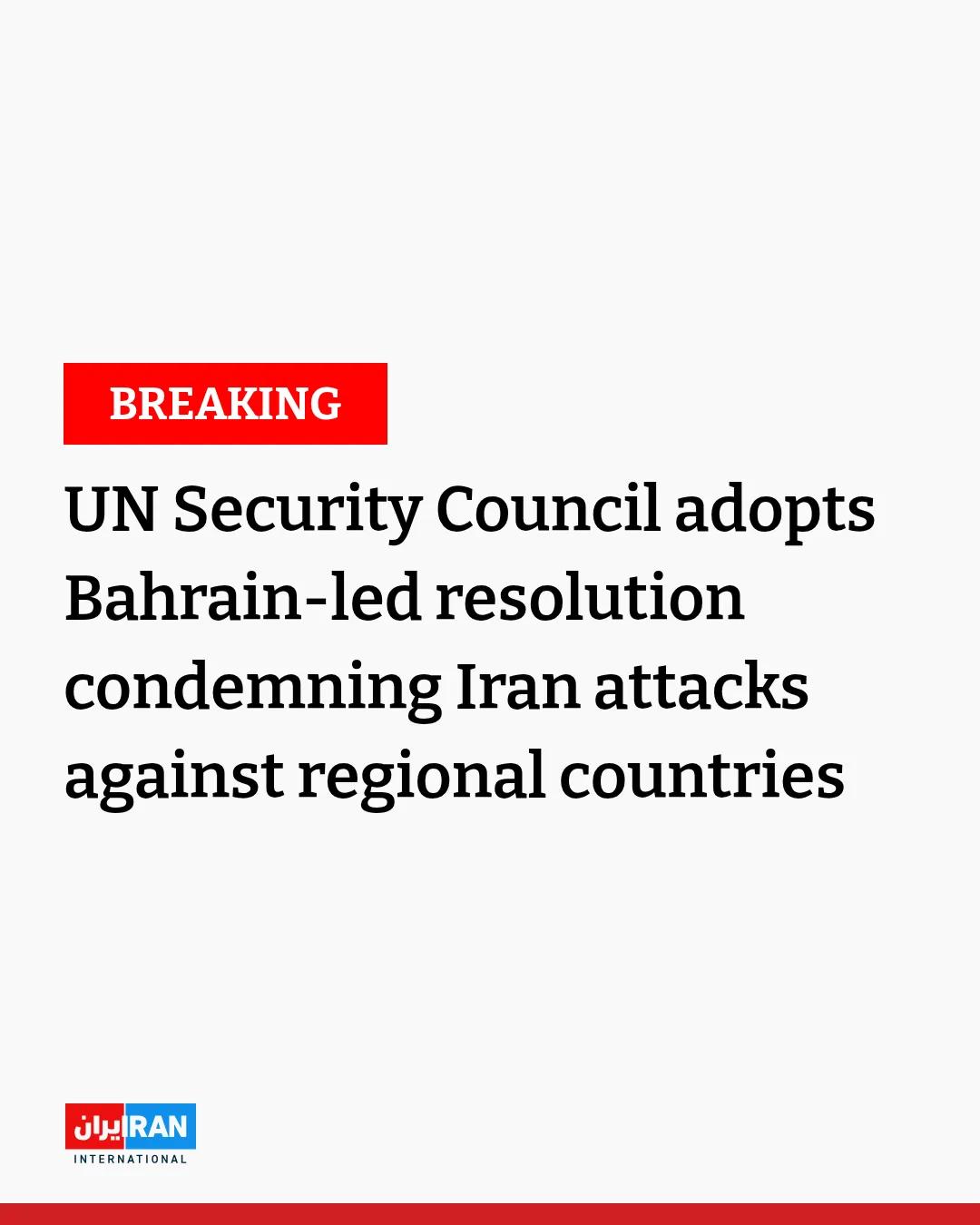 突发新闻 联合国安理会通过了一项由巴林牵头的决议,谴责伊朗对多个地区国家发动袭击,并要求伊朗立即停止此类袭击。该决议谴责伊朗对中东地区持续升级的危机。 决议以13票赞成、2票弃权(中国和俄罗斯)获得通过。 决议以“最强烈的措辞”谴责伊朗对巴林、科威特、阿曼、卡塔尔、沙特阿拉伯、阿拉伯联合酋长国和约旦发动的“令人发指的袭击”,并指出此类行为违反国际法,严重威胁国际和平与安全。 决议还要求伊朗“立即停止”对上述国家的一切袭击。 BREAKING The UN Security Council has adopted a Bahrain-led resolution on the escalating crisis in the Middle East that condemns attacks by Iran against several regional countries and demands an immediate halt. The resolution was adopted with 13 votes in favor and two abstentions from China and Russia. The text condemns “in the strongest terms the egregious attacks” by Iran against Bahrain, Kuwait, Oman, Qatar, Saudi Arabia, the United Arab Emirates and Jordan, adding that such acts constitute a breach of international law and a serious threat to international peace and security. It also demands the “immediate cessation” of all attacks by Iran against those countries.