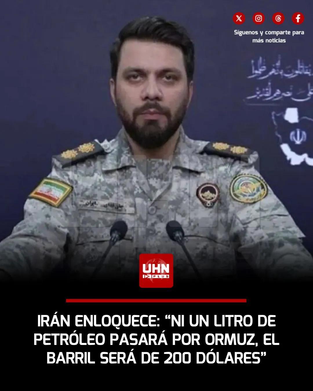 🇮🇷🇺🇸‼️ | 伊朗伊斯兰革命卫队发言人易卜拉欣·佐勒法加里向唐纳德·特朗普和其他卷入这场冲突的国家发出严厉威胁:“一滴石油都不能通过霍尔木兹海峡。你们休想降低油价。我希望你们做好准备,因为一桶石油的价格将达到200美元。油价取决于该地区的安全,而你们正是这种不安全的根源……” 🇮🇷🇺🇸‼️ | El portavoz de los Cuerpos de la Guardia Revolucionaria Islámica de Irán, Ebrahim Zolfagari dejó una amenaza feroz a Donald Trump y el resto de los países involucrados en este conflicto: "Ni una gota de petróleo pasará por el Estrecho de Ormuz, no podrán bajar el precio del petróleo. Espero que estén preparados porque el barril costará 200 dólares. El precio del petróleo depende de la seguridad en la región, y ustedes son la fuente de esa inseguridad...".