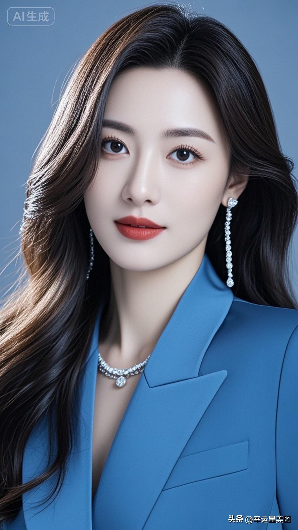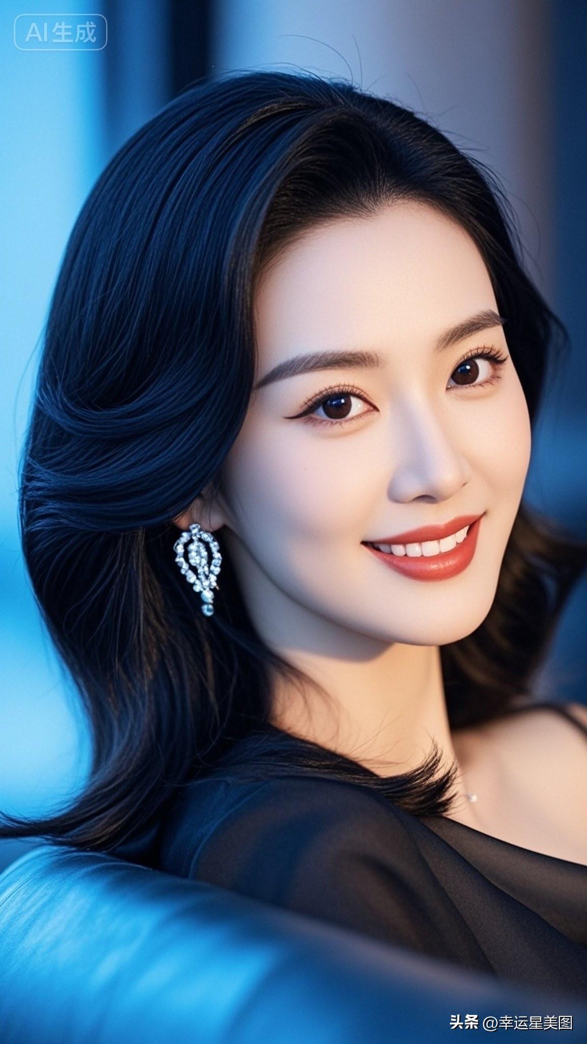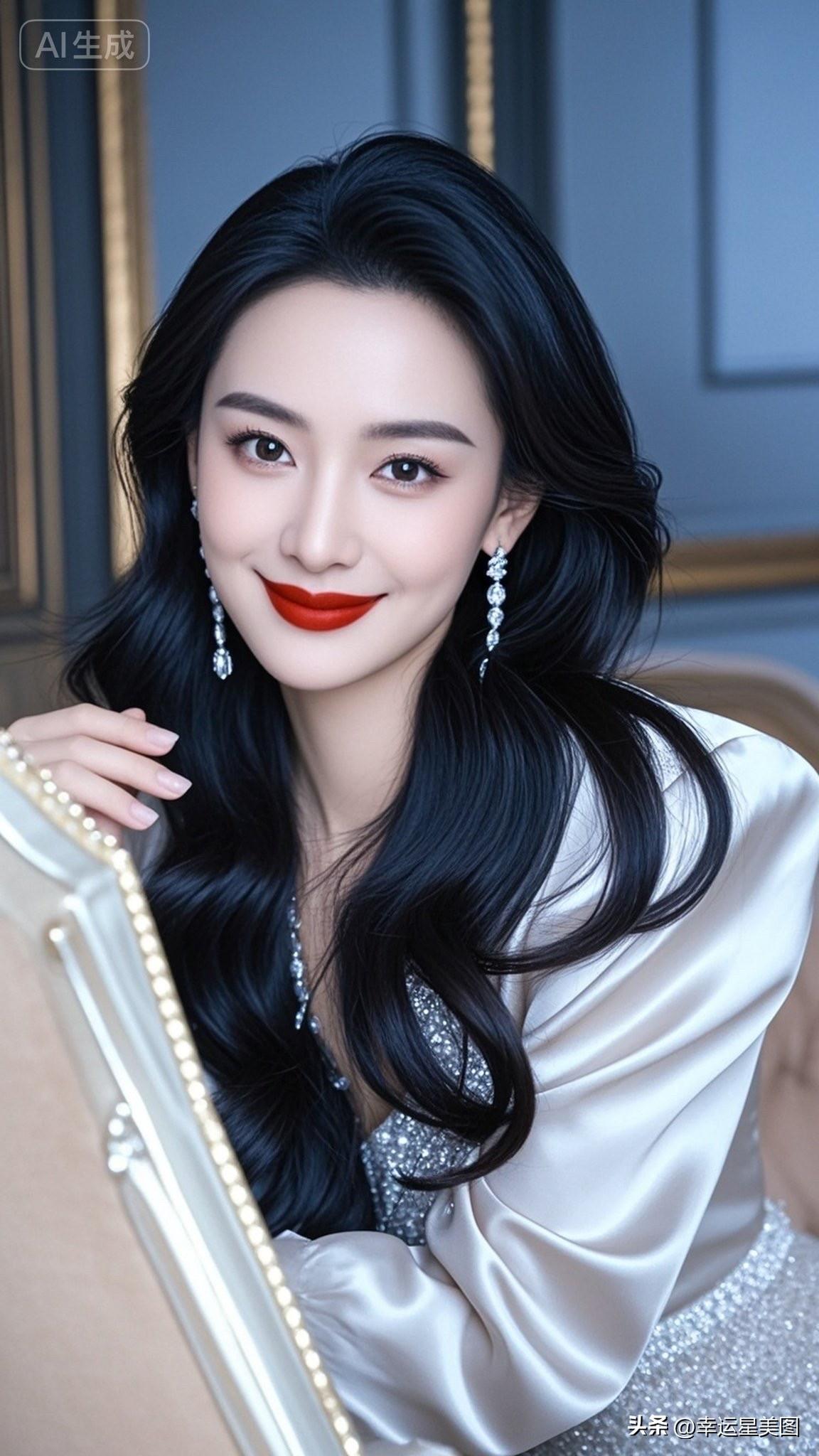 优雅红唇,闪耀耳环,黑发美人,气质非凡