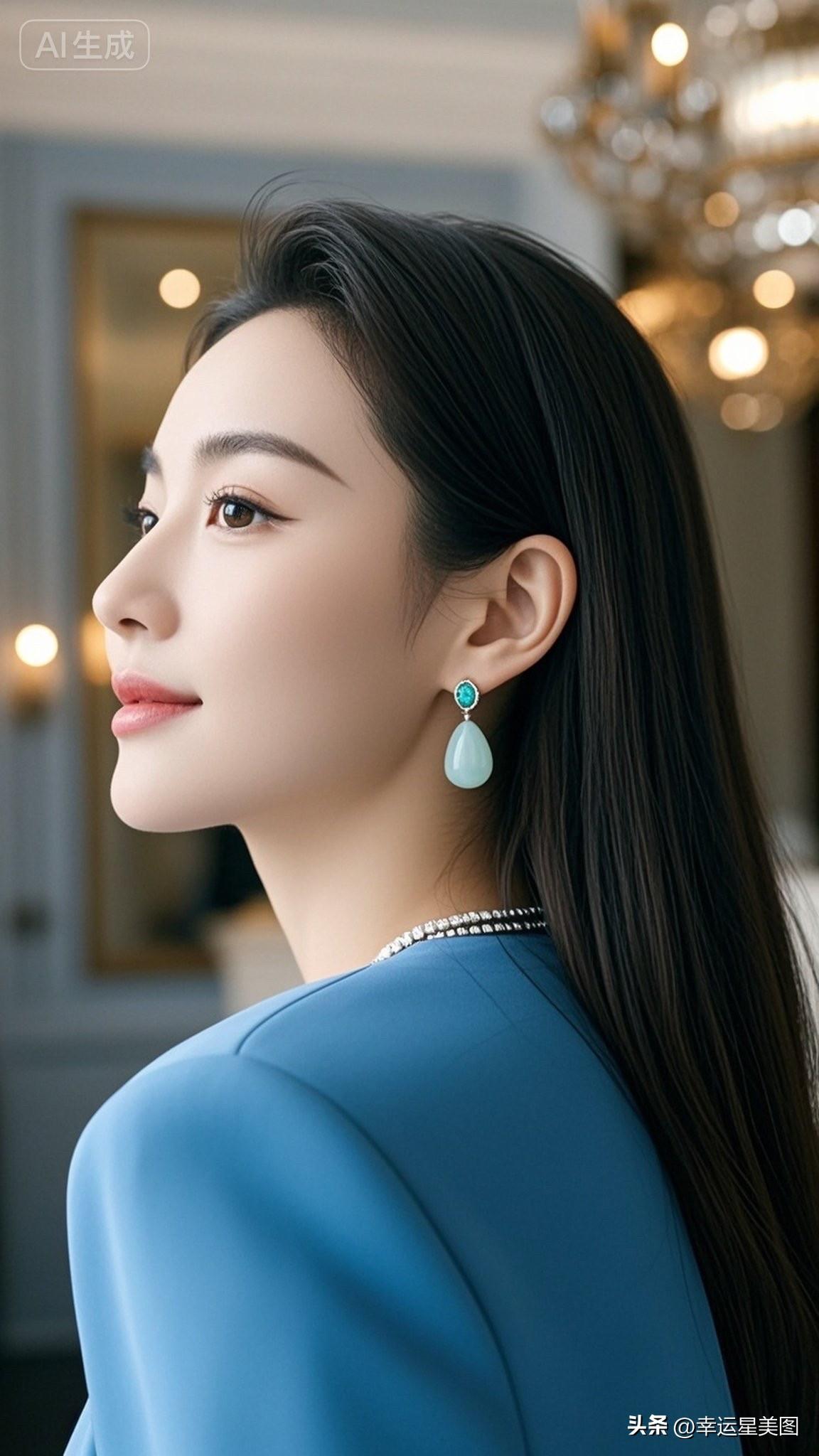优雅黑发少女,沉思的瞬间,复古耳环点缀,温柔如水。