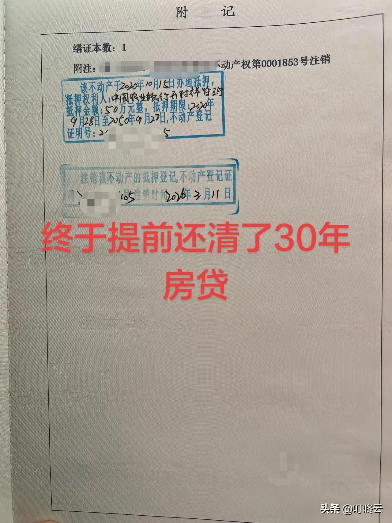 🏠 房奴终于“上岸”!我的房奴渡劫记。从此以后“无债一身轻”,孝顺父母,养好娃,向着下一个小目标冲鸭!🚀🚀 五年半前,我在2020年的秋风里签下房贷合同,把自己“卖”给了30年的漫漫还贷路,正式解锁“房奴”身份。那时候,工资刚到账就光速“上交”银行,奶茶自由成了奢望,外卖只敢点满减,连逛超市都要在零食区反复做心理建设——毕竟每一口快乐,都要换算成下个月的月供碎银。[点亮平安灯][点亮平安灯][燃烧的心][燃烧的心] 那些年,“提前还款”是藏在备忘录里的执念,是深夜加班时的鸡血,是不敢轻易辞职的枷锁。看着不动产权证上那行抵押登记,总觉得背上压着一座看不见的山,连呼吸都带着“还贷”的重量。[流泪][流泪] 终于在2026年的春风里,我把最后一笔钱打进银行,亲手给那页抵押登记盖上“注销”章!红本本终于完完全全属于自己,那一刻,比中了彩票还上头,比高考放榜还激动——“无债一身轻”原来不是传说,是真的能让人蹦跶着走路的快乐![大笑][大笑] 往后余生,再也不用为月供焦虑,终于能把更多精力留给身边人:陪父母慢慢变老,听他们唠叨家常;陪孩子慢慢长大,看他撒欢奔跑。从前为房贷低头,如今为生活抬头,“行到水穷处,坐看云起时”,原来苦尽甘来的滋味,比任何山珍海味都要动人。[福][福][大金牙][大金牙] 未来的日子,继续热气腾腾地活着,孝顺父母,养好娃,向着下一个小目标冲鸭!🚀 欢迎关注@叮咚云 就业择业指导,帮你快速拿到央国企offer!将优先为粉丝职业规划指导,为你定制最适合的就业择业方案!欢迎留言交流讨论。[来看我][来看我] 免责声明:图片来自网络,仅供参考