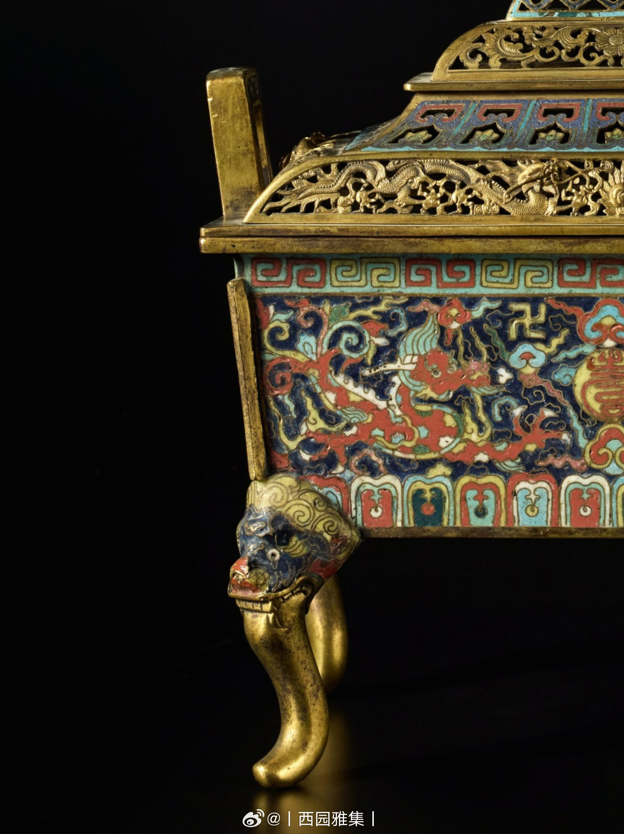 明万曆 铜胎掐丝珐琅双龙捧寿纹四足炉《大明万曆年造》款