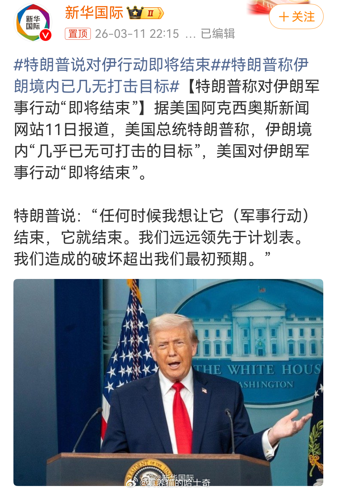 特朗普说对伊行动即将结束 笑死了,真会给自己找台阶,结合伊朗称不再局限于对等反击 这个话题看更有意思。