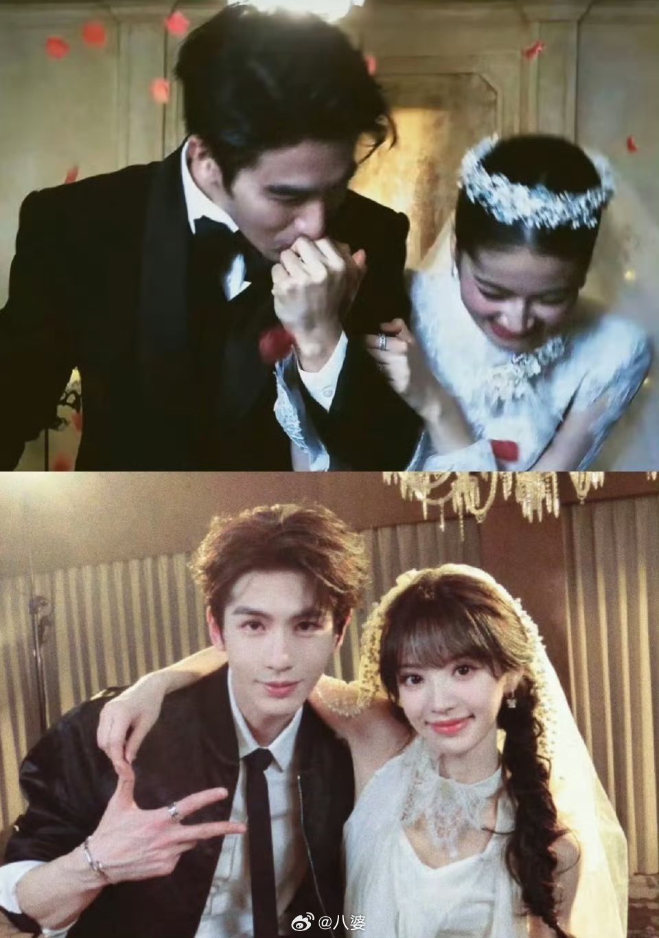 张凌赫田曦薇头纱照早就盼着他俩拍婚纱,今天终于等到了!田曦薇的碎花冠配白头纱,张凌赫的黑西装衬得人又苏又正,22cm身高差往那一站就是氛围感天花板。现场复刻剧里桥段,连搀扶、量腰围这些细节都自然到不像营业,难怪大家喊着要原地结婚,这CP感谁看了不迷糊!