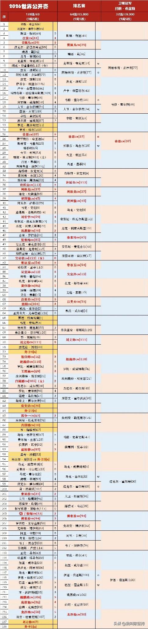 距离2026斯诺克世界公开赛(玉山)开打仅剩4天,但赛事正遭遇前所未有的“退赛潮”。受近期中东紧张局势影响,多名球员出于安全考虑选择退赛。 截至3月12日,已确认有6位球员退出正赛: * 巴里·霍金斯退赛 → 伊恩·伯恩斯自动晋级32强 * 马克·塞尔比退赛 → 迈克尔·霍尔特自动晋级32强 * 克里斯·沃克林退赛 → 由马克·劳埃德替补,首轮对阵特鲁姆普 * 斯蒂芬·马奎尔退赛 → 中国选手徐思自动晋级32强 * 大卫·吉尔伯特退赛 → 马修·塞尔特自动晋级32强 * 克里斯·韦克林退赛 → 阿特米斯·齐津斯自动晋级32强 球迷普遍担忧,未来几天可能还有更多球员退出。中国军团方面,徐思 不战而胜晋级,其世界排名也上升至第37位,距离TOP32仅一步之遥。齐津斯 的排名也升至第69位,保级希望大增。而范争一 则继续在降级区边缘徘徊,形势严峻。 台球的世界,世界的玉山。 玉山虽然是台球产业链重要的一环,但是毕竟是三四线城市,有高铁,没有机场。高铁虽然交通方便,但是肖国栋说由于球杆太长,没办法上火车,只能坐飞机。飞机则飞到上饶机场,然后再过来。交通还是存在问题。 中东战事也带来很大的影响,一动不如一静,也是很多球员不愿意出门的原因。而且,如果战事持续,明年沙特举办的高奖金比赛,也可能会取消。 至于说球迷的素质问题,我想说的就是看球的也不一定是本地人,而且各地球迷也差不多,你看丁俊晖在国外打球,还给骂哭了,不要双标!