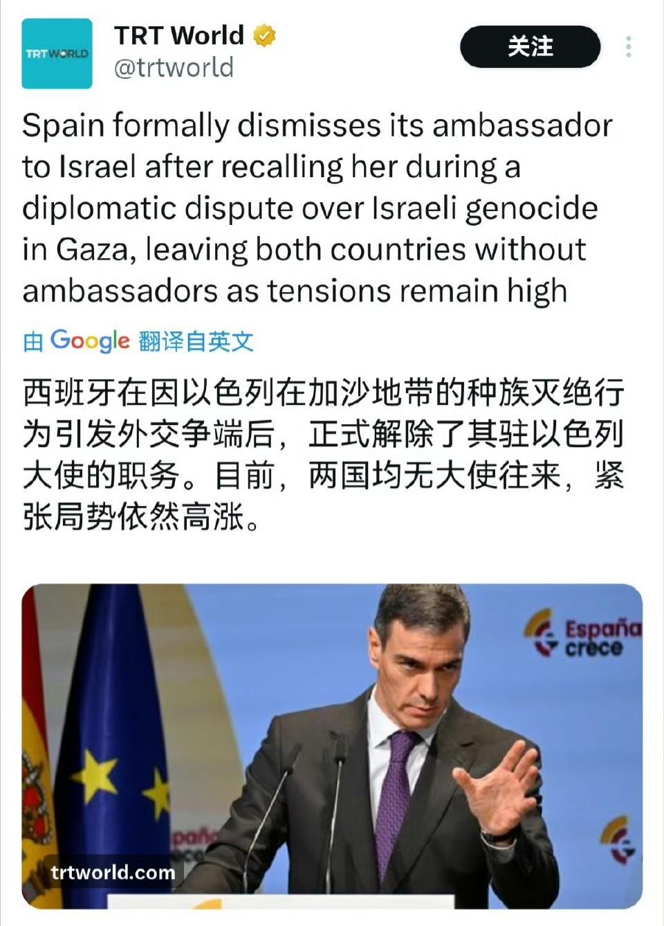 西班牙硬钢以色列,西班牙又做一次正义之举! 西班牙政府决定解除驻以色列大使安娜·