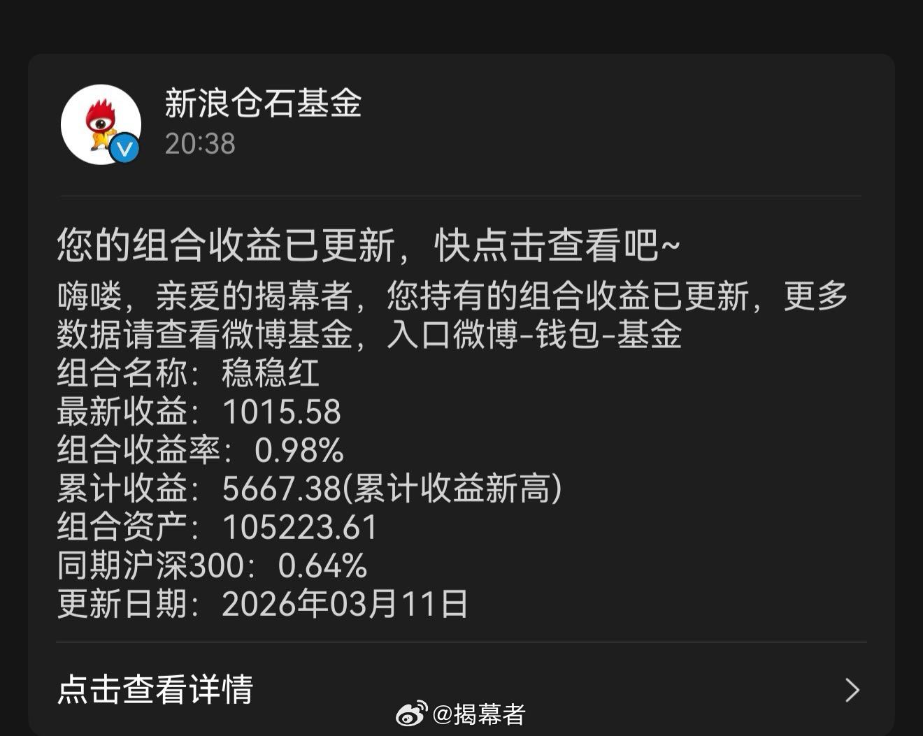 稳稳红累计收益创新高了,$稳稳红 ofzh18220$