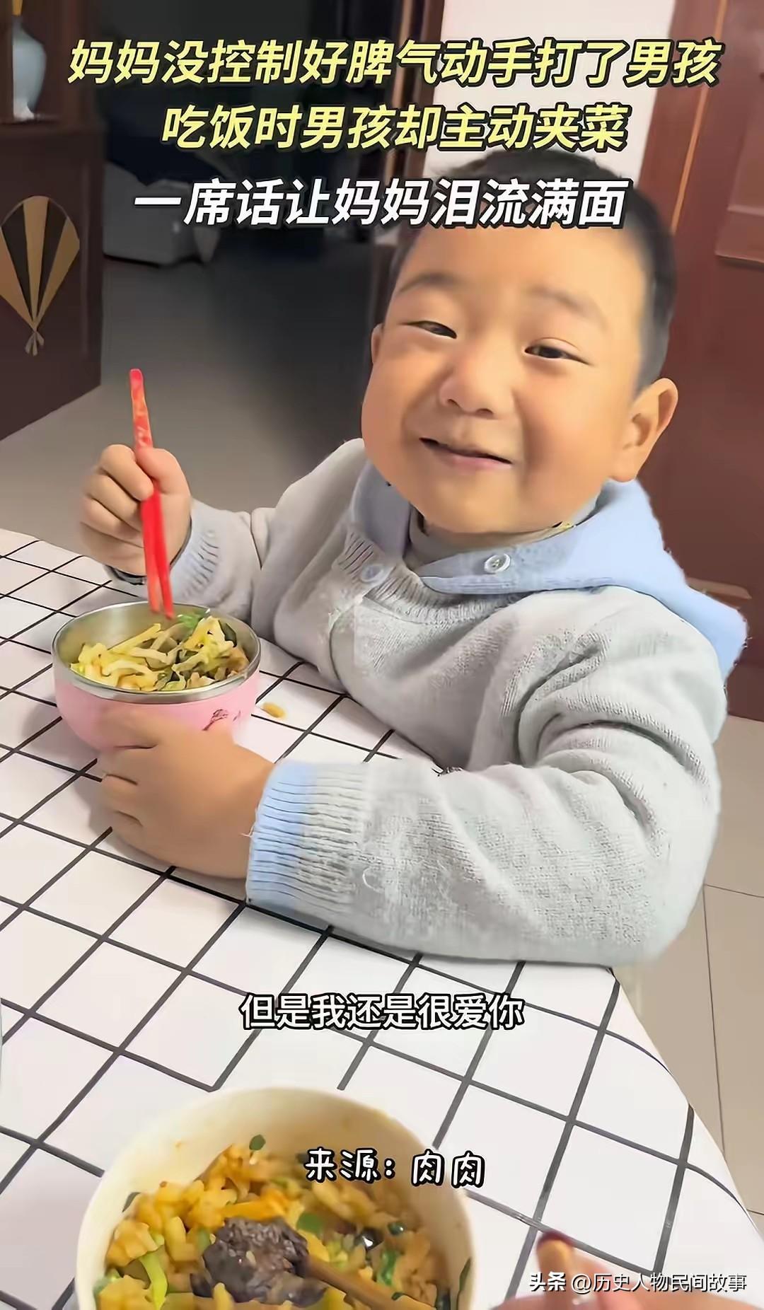 真的太好哭了。妈妈一时冲动动了手,孩子却在饭桌上主动给妈妈夹菜,没有记仇、没有委屈,只有心疼和体谅。 孩子不是不疼,而是太爱妈妈了。 他知道妈妈不容易,知道妈妈不是故意的,小小年纪就学会了包容和原谅,把委屈自己咽下去,还想着温暖妈妈。 这样的孩子,真的是来报恩的。 也愿每一位妈妈,都能被孩子的温柔治愈,少一点急躁,多一点耐心,好好守护这份最纯粹的爱。接住孩子情绪 儿子瞬间落泪 爸爸瞬间落泪 素材来源于网络
