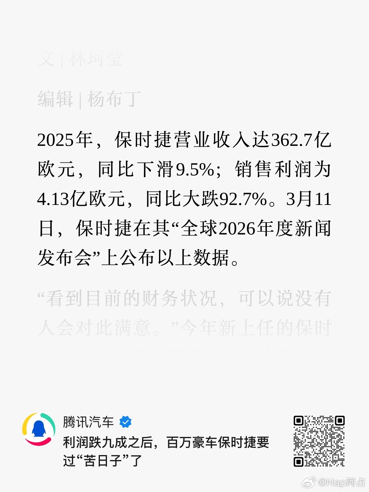 是一个崭新的时代来临了吗?保时捷利润同比下跌达到惊人的92.7%!