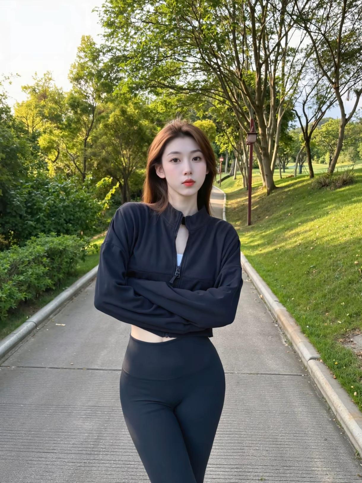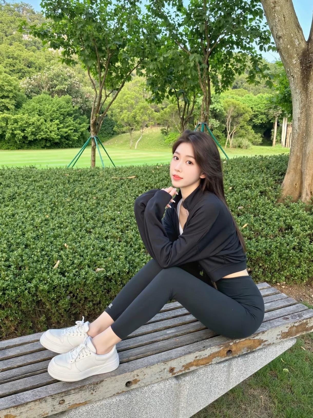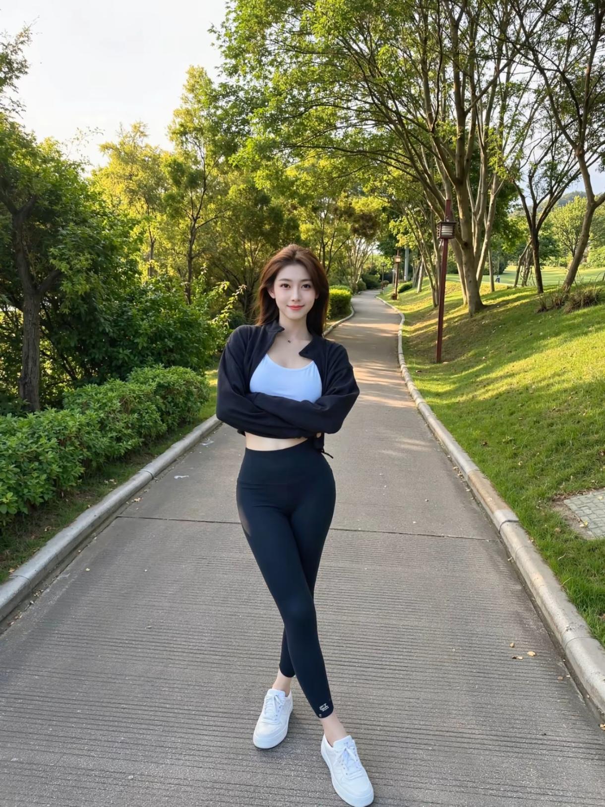 白短T+黑瑜伽裤,公园松弛感直接拉满✨ 逛公园就爱这种舒服又上镜的搭配。 白U领短T修身不勒,高腰瑜伽裤包裹感超赞,一身运动风,走久也不累。 经典黑白干净又显质感,短款刚好拉高腰线,在绿意里线条特别利落。 往草坪上一坐,慵懒随性的氛围感,随手拍都好看。穿搭 瑜伽紧身裤穿搭