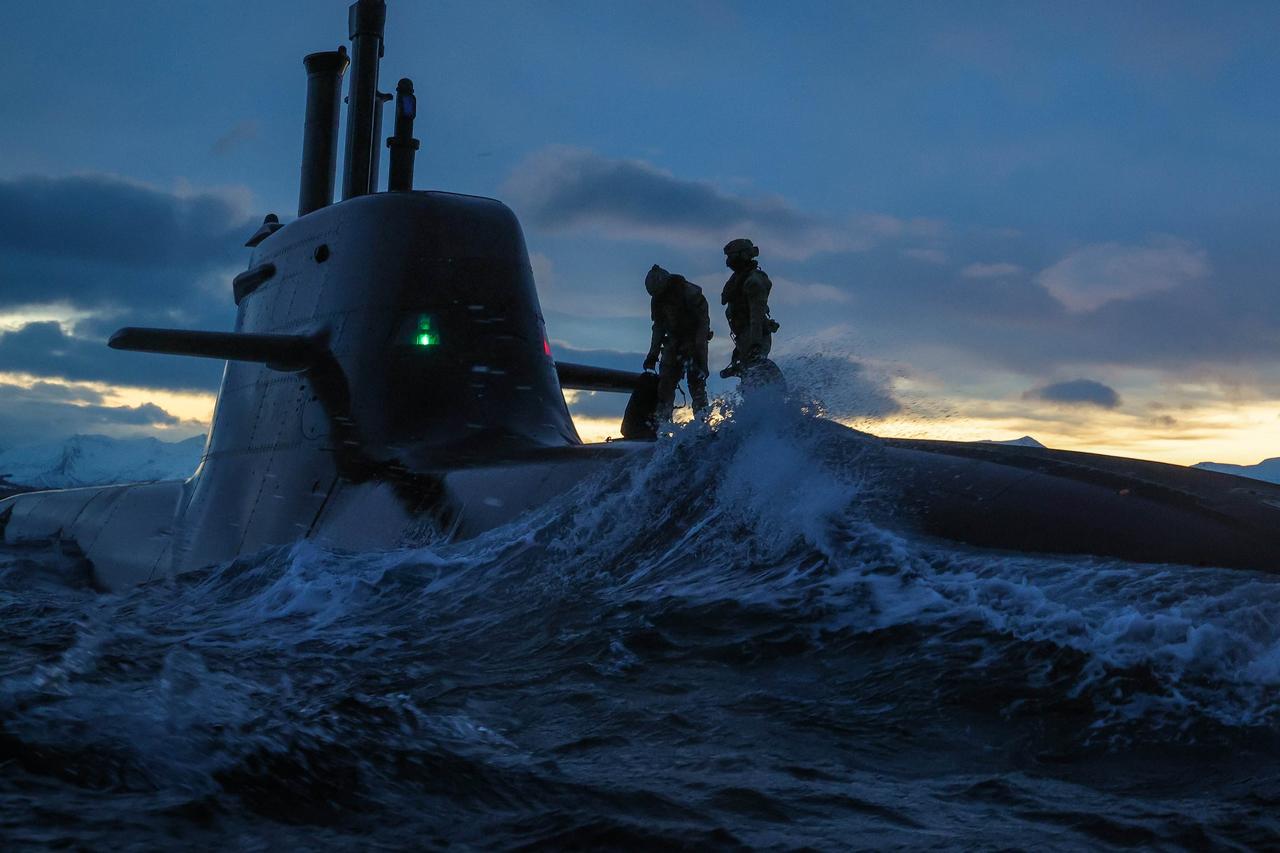德国U-35潜艇在“寒冷反应”演习期间, 在北极圈内从冰冷的深渊中浮现执行隐蔽侦察任务。 他们沿着挪威海岸秘密行动,识别模拟敌方阵地,引导盟军海军火力,采取应对行动。 “寒冷反应”是北约“北极哨兵”强化警戒活动的一部分,这项训练旨在确保北约部队防卫联盟的北部侧翼安全。