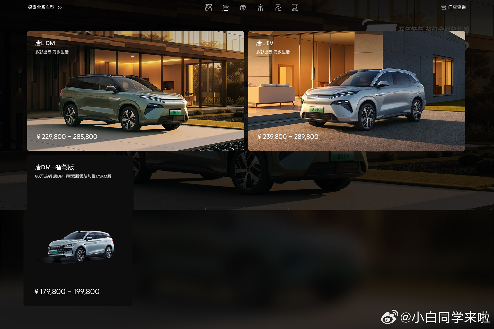 目前比亚迪唐系列只有唐和唐L 两款产品,其中唐 DM-i 售价是 17.98-19.98 万;唐L 的售价是 22.98-28.98 万。