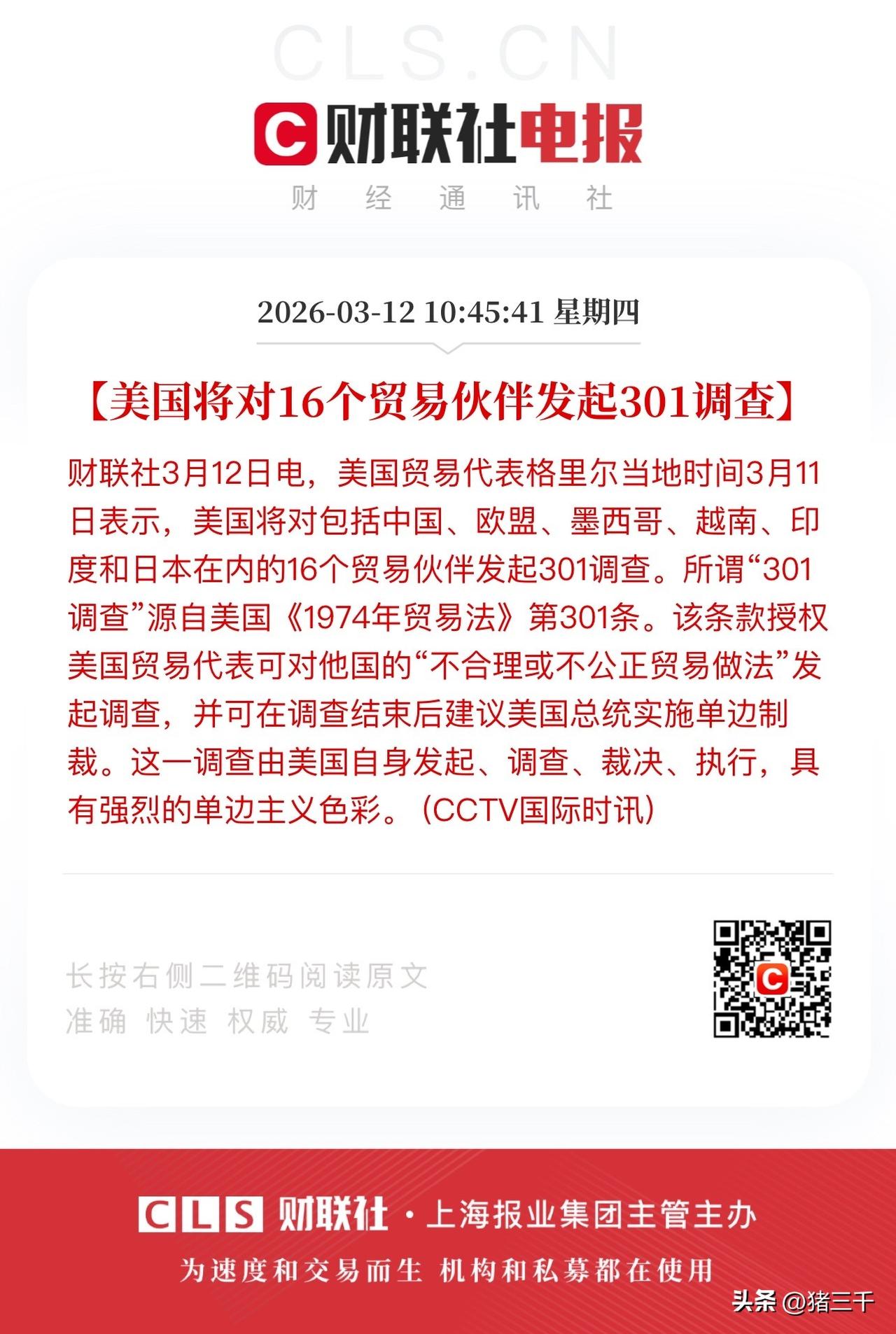 盘中两重偏利空消息! 布伦特原油加大涨势油气板块再次和大盘形成跷跷板效应,防守资金狂推煤炭石油。 美国对16个贸易伙伴发起301调查,包括中国、欧盟、墨西哥、越南、印度和日本。 显然美国在伊朗正面战场交锋不达预期, 基地被一锅端损失大, 开始从贸易端找补了! 日渐式微的纸老虎没什么可担忧的! …