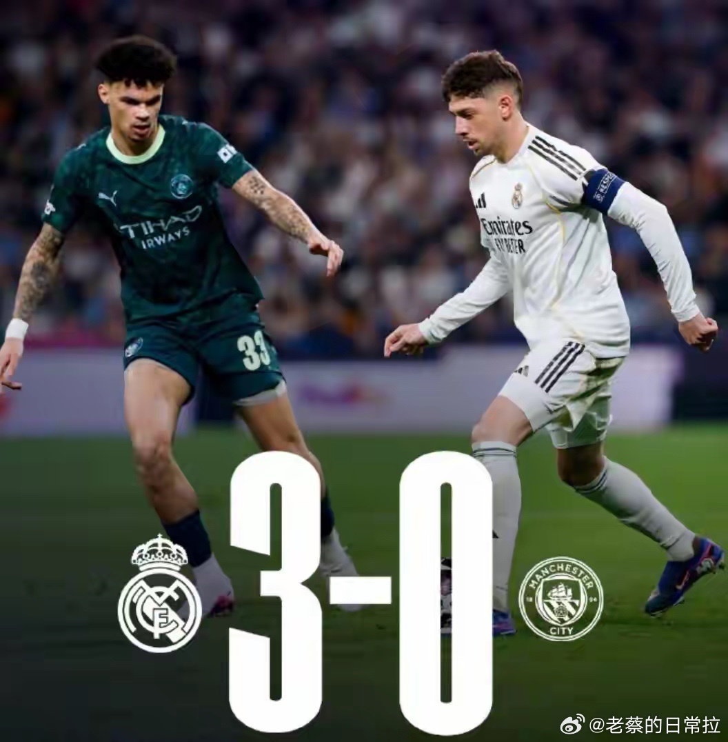 欧冠1/8决赛首回合,皇马主场3-0完胜曼城,巴尔韦德上演帽子戏法,维尼修斯送出两次助攻。比赛中皇马快速进入状态,半场便确立3球领先优势,下半场双方均无建树。