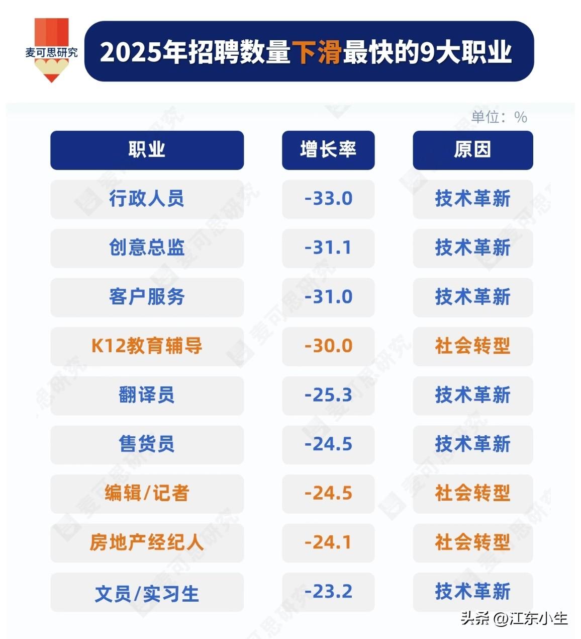 2025年招聘数量下滑最快的9个职业。