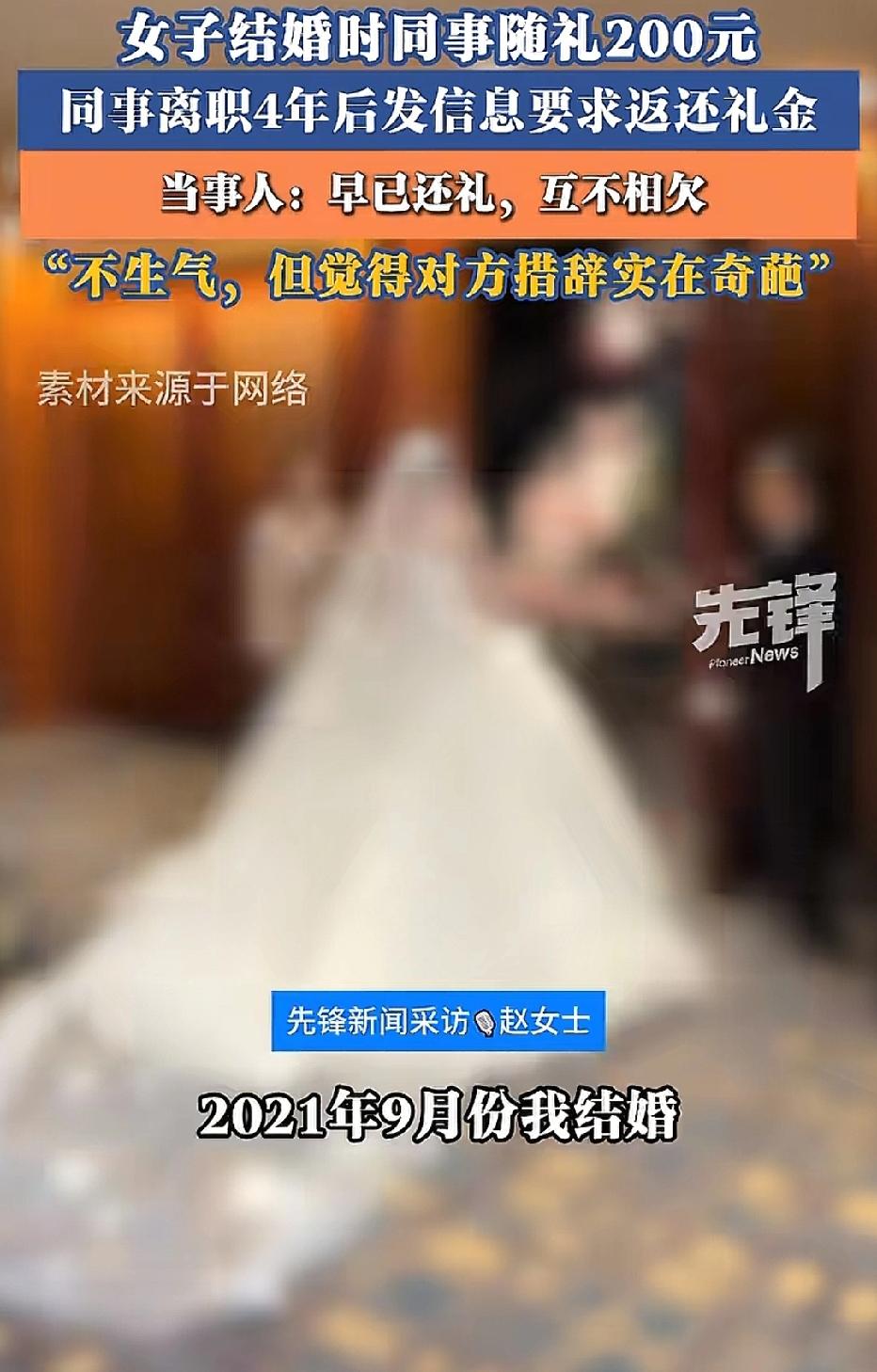 河北石家庄,女子结婚时,刚入职不久的同事随了200元礼金。没想到4年后,离职的同