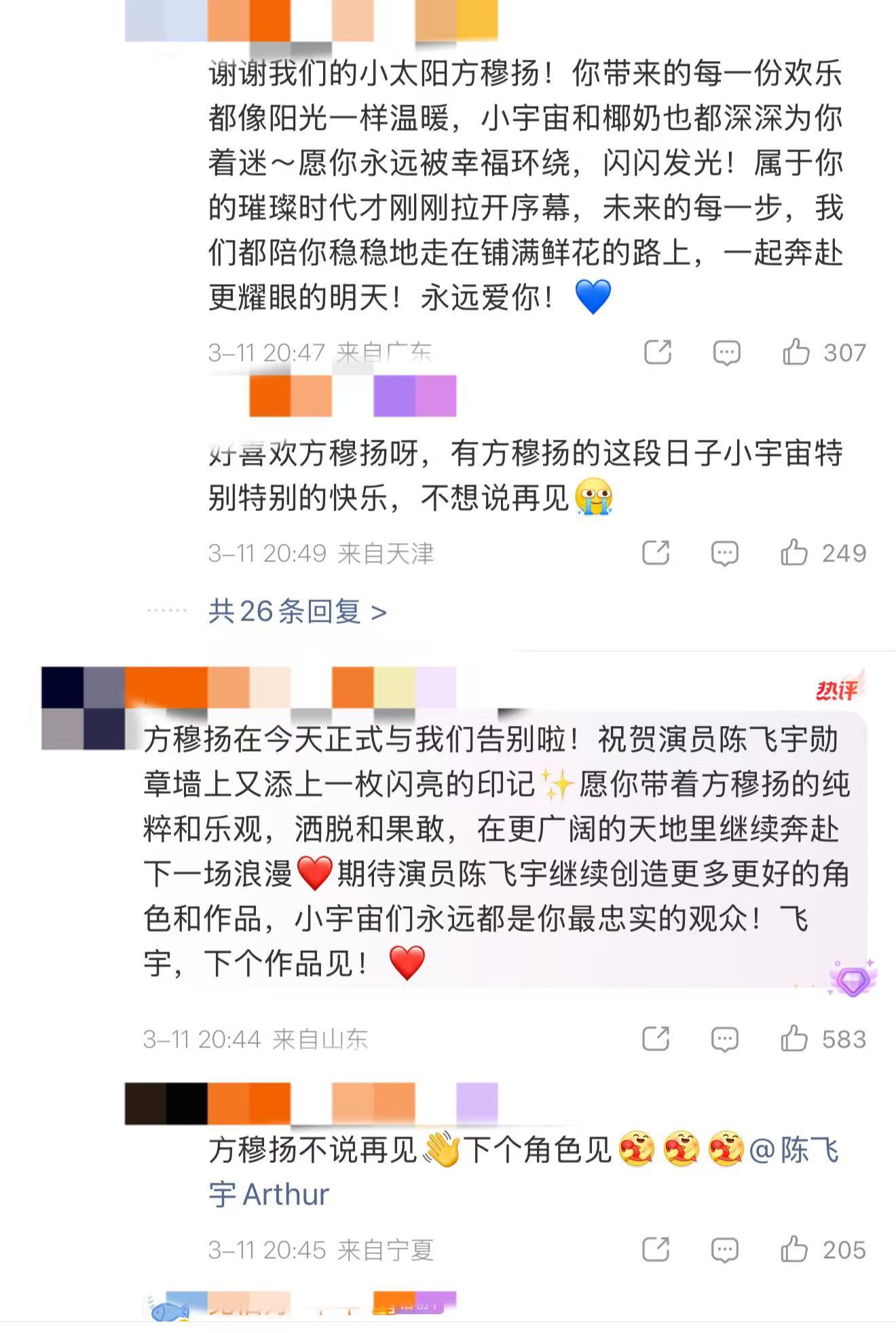 陈飞宇微博评论区陈飞宇告别方穆扬的语音好戳心,粉丝们纷纷留言,字里行间都是对他的