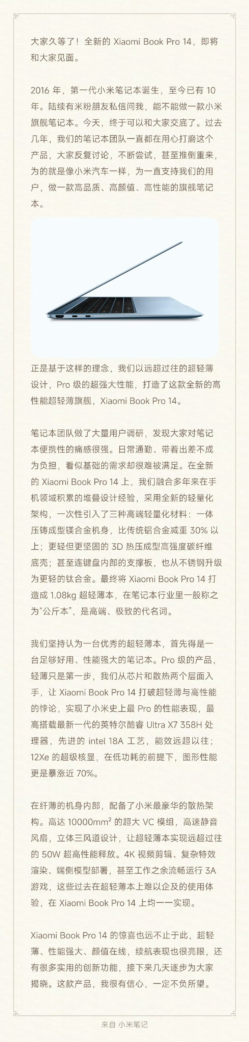 卢伟冰官宣小米笔记本新品即将发布 时隔四年,小米品牌笔记本正式回归!此前小米与REDMI定位重叠,如今双品牌定位清晰,小米冲击超高端公斤本。