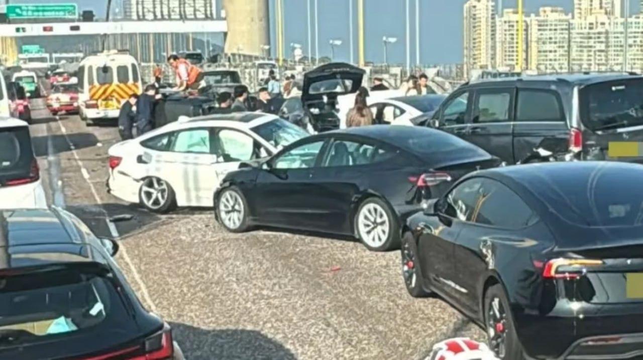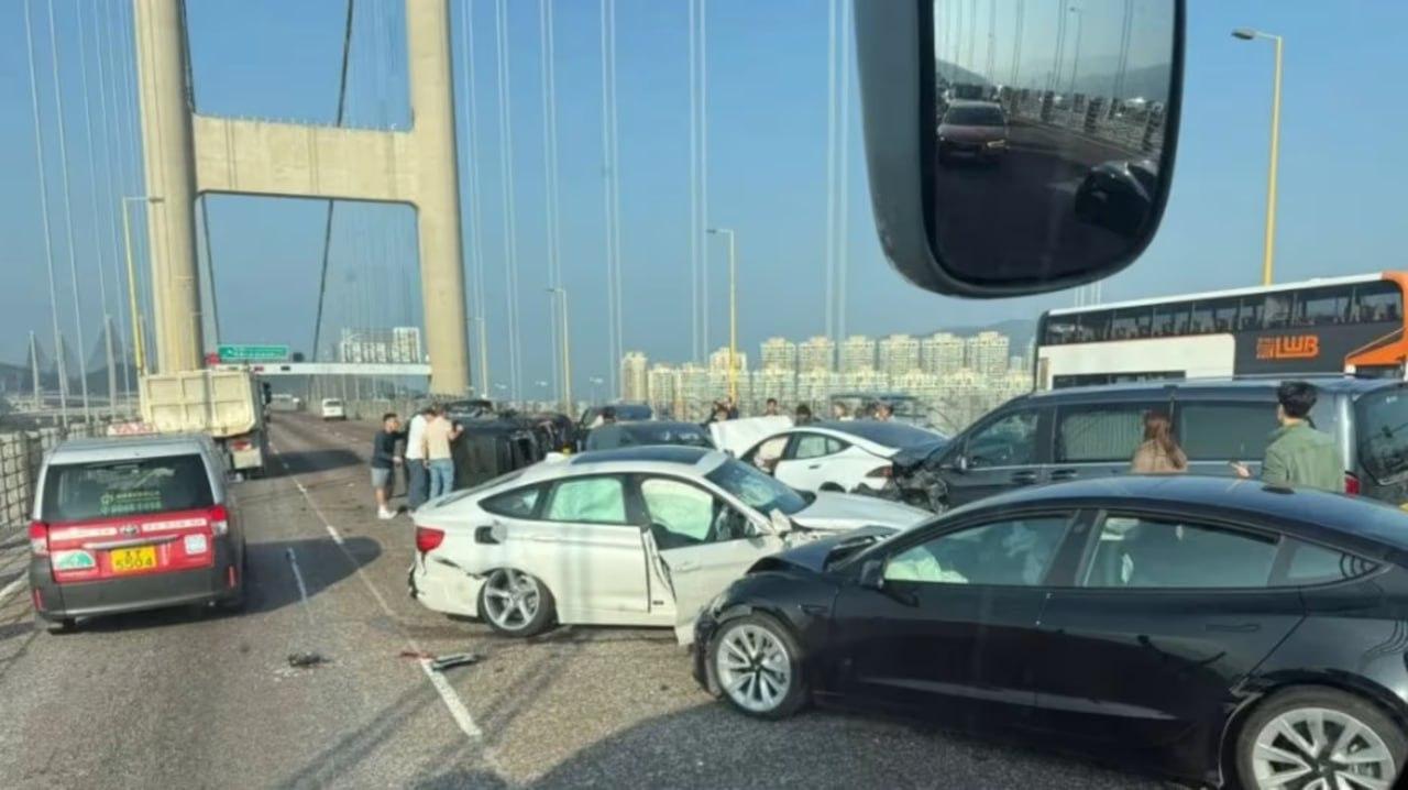 上午8时许,香港青马大桥往机场方向突发惊魂一幕!刺耳的刹车声划破晴空,一场惨烈车