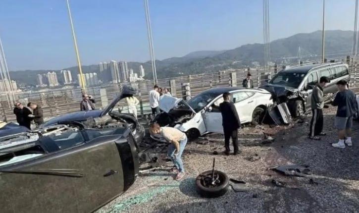上午8时许,香港青马大桥往机场方向突发惊魂一幕!刺耳的刹车声划破晴空,一场惨烈车祸骤然爆发,现场狼藉一片,令人触目惊心。 多车连环追尾,一辆汽车侧翻在地,车身扭曲变形,零件散落满地,更有车辆冒出滚滚浓烟,情况十万火急!司机与乘客被困车内,命悬一线,呼救声此起彼伏,现场气氛紧张到极点。 警方与救援人员火速驰援,争分夺秒展开营救。破拆工具齐上阵,撬开变形车门,将被困者逐一救出。经清点,至少10人受伤,所幸伤者均意识清醒,被紧急送往医院救治。 事故瞬间截断大桥通行,多条车道被迫封闭,车龙绵延数里,拥堵不堪,前往机场的旅客心急如焚。港铁紧急启动应急预案,加密机场快线及东涌线班次,全力疏导滞留旅客,避免机场出行陷入瘫痪。 目前,事故原因仍在调查之中,大桥交通逐步恢复中,后续进展仍待进一步通报。