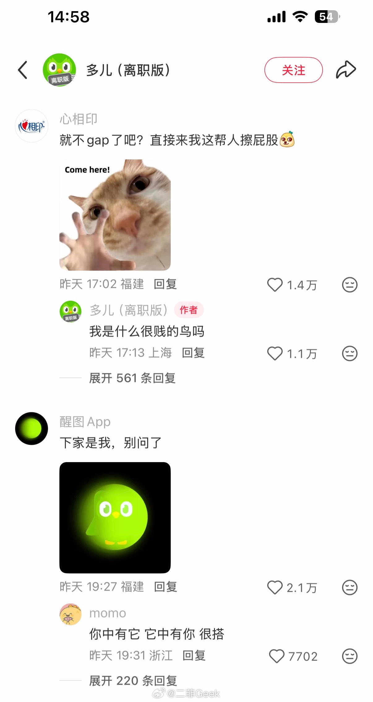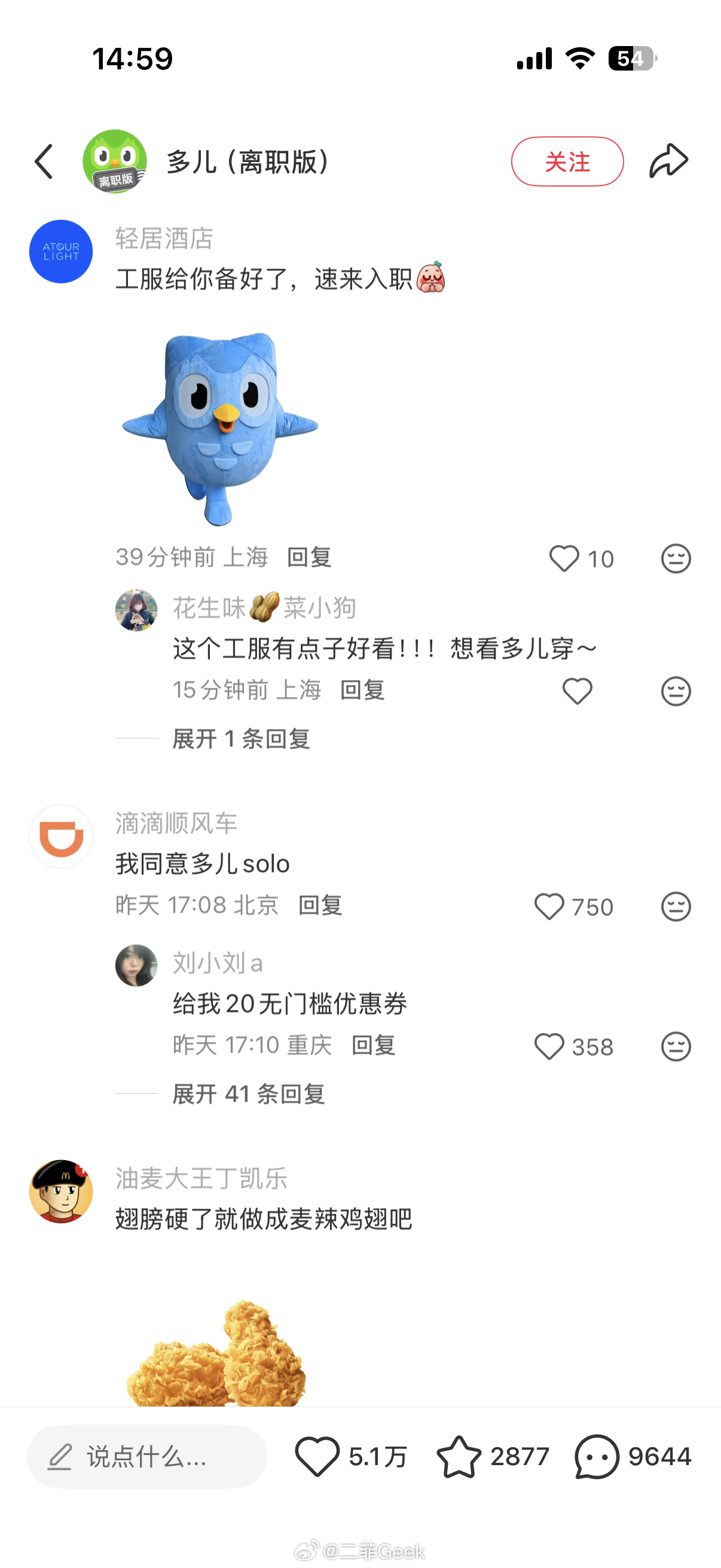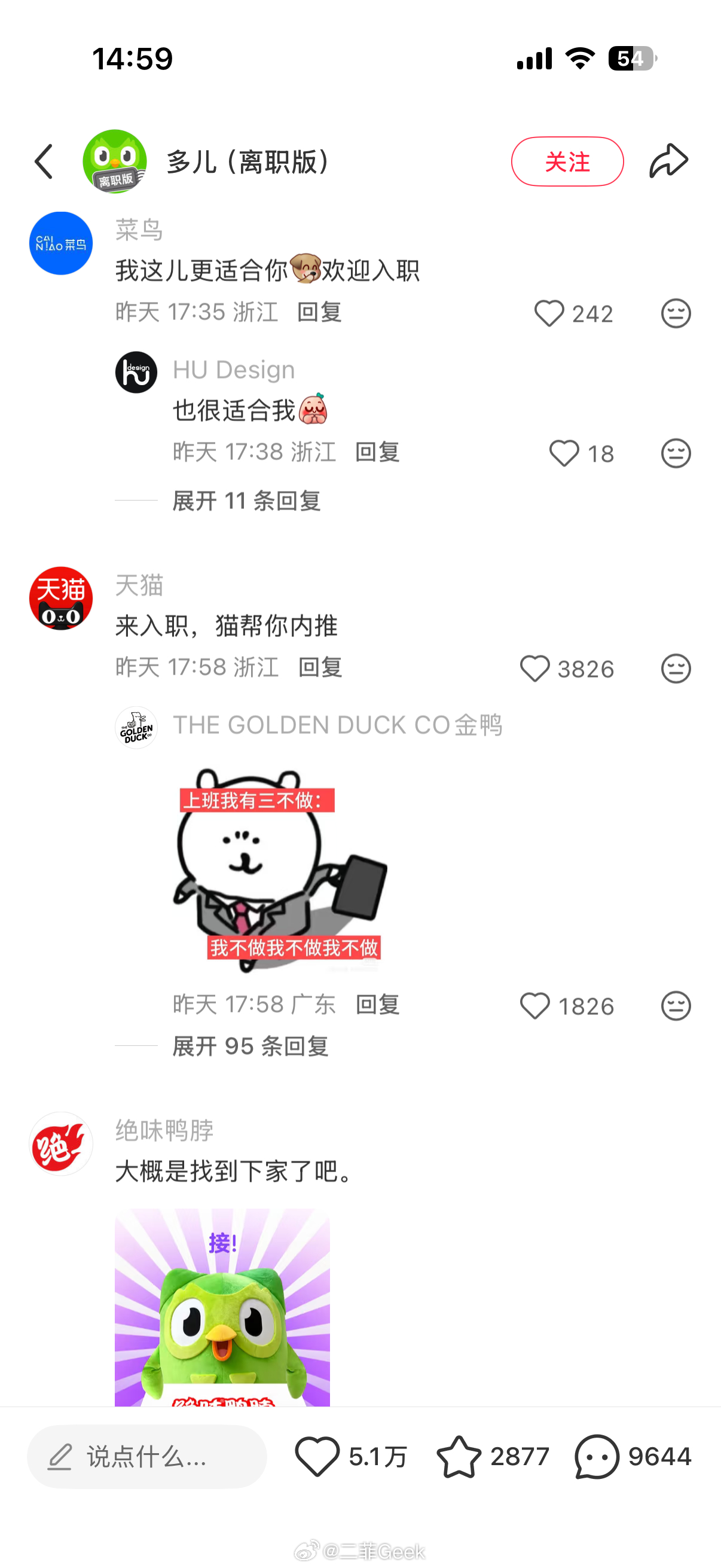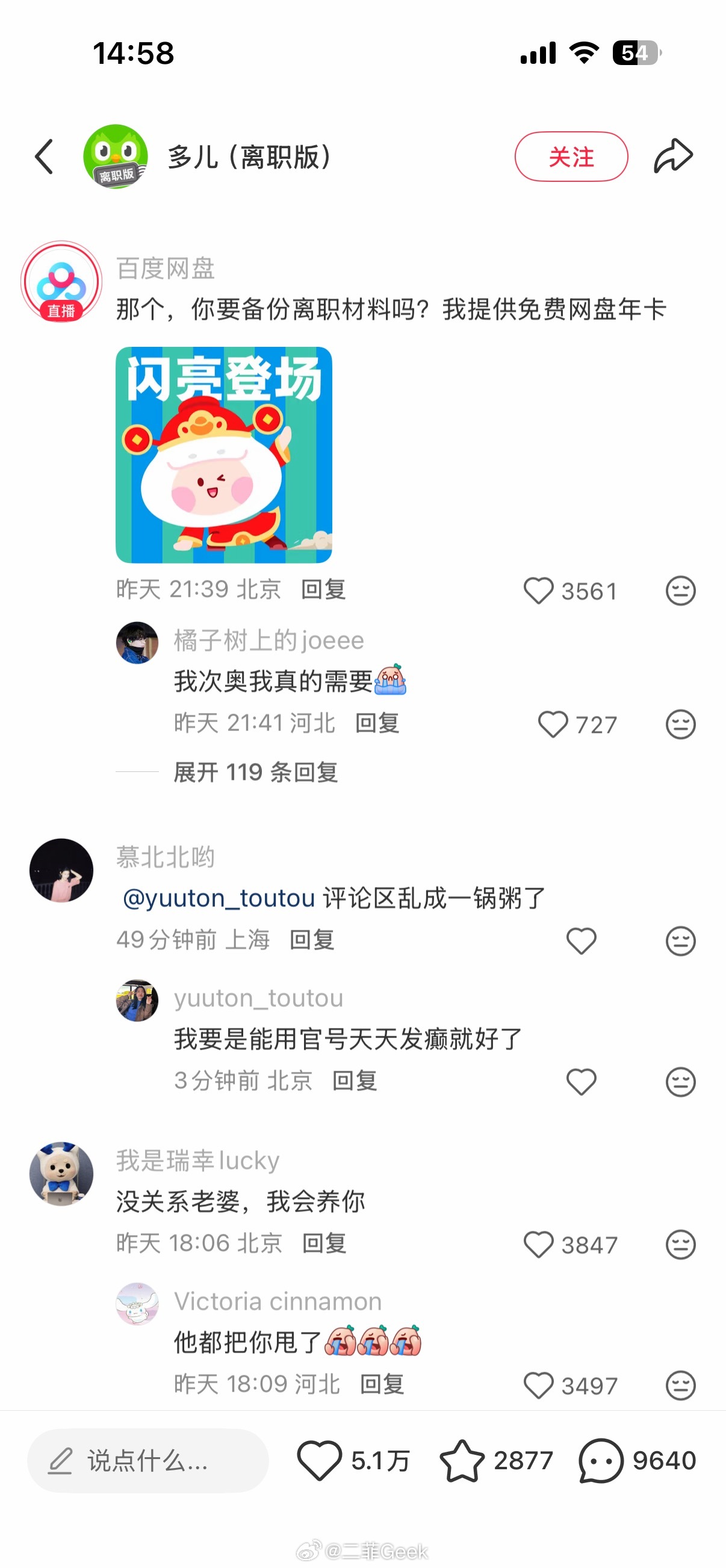多邻国热度这么高吗绿鸟离职评论区一堆官方账号来添乱心相印、醒图app、百度网盘、瑞幸、深蓝汽车、领克汽车、滴滴顺风车……各个品牌都乱成一锅粥了可以趁热喝了