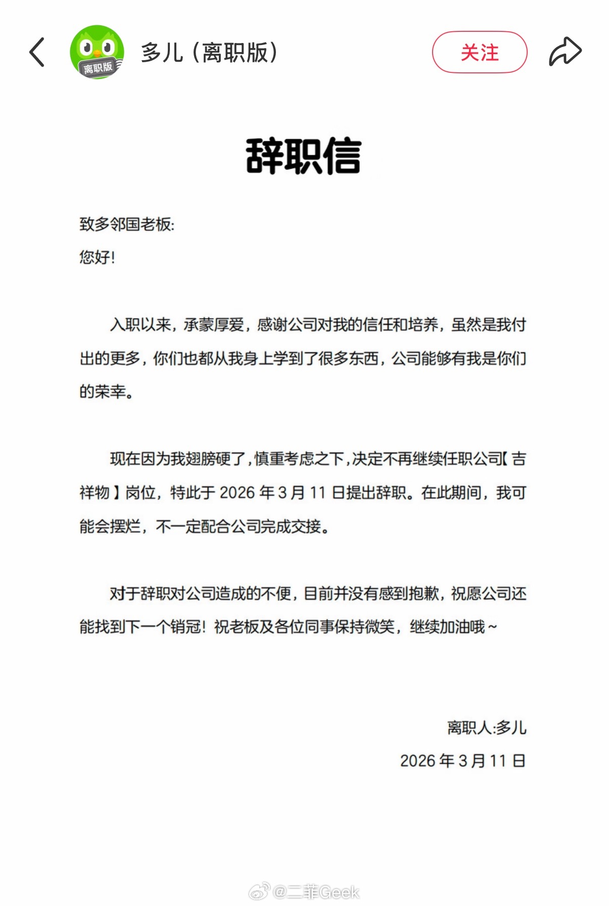 多邻国绿鸟 离职