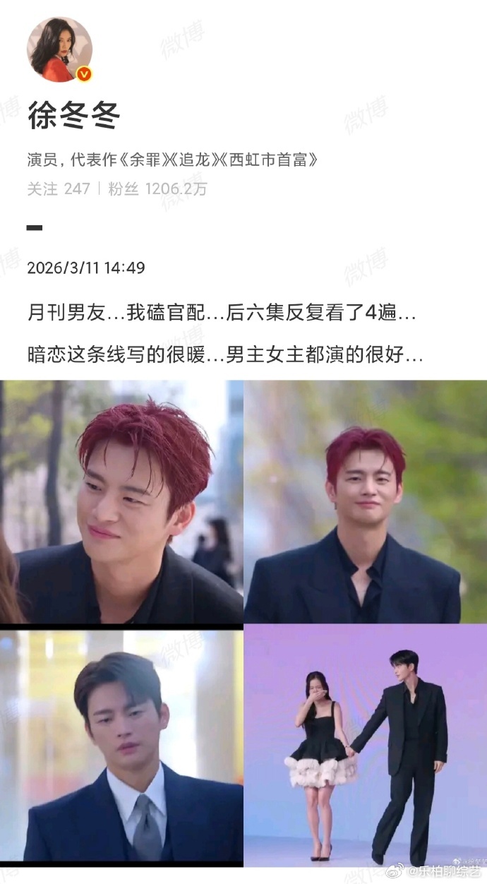 徐冬冬磕到智秀和徐仁国了 其实徐冬冬这么多年来审美都是没有变的呀,最近改《月刊男友》徐冬冬磕到智秀和徐仁国了,简直就是跟我们追剧一模一样